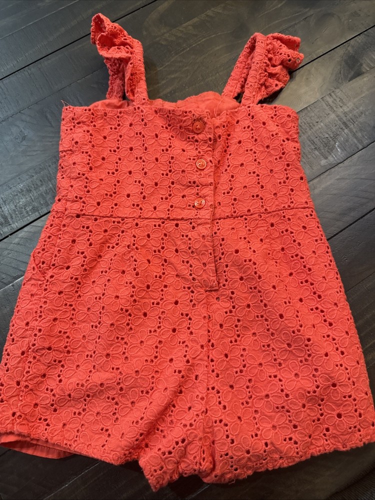 The Janie and Jack Girls' Red Jumpsuit in size 12-18 months is a stylish and comfortable one-piece outfit perfect for casual occasions during the summer and spring seasons. Made from 100% cotton, this sleeveless romper features ruffle accents and is machine washable for easy care. The vibrant red color adds a pop of fun to any little girl's wardrobe, making it a versatile and fashionable choice for young children.