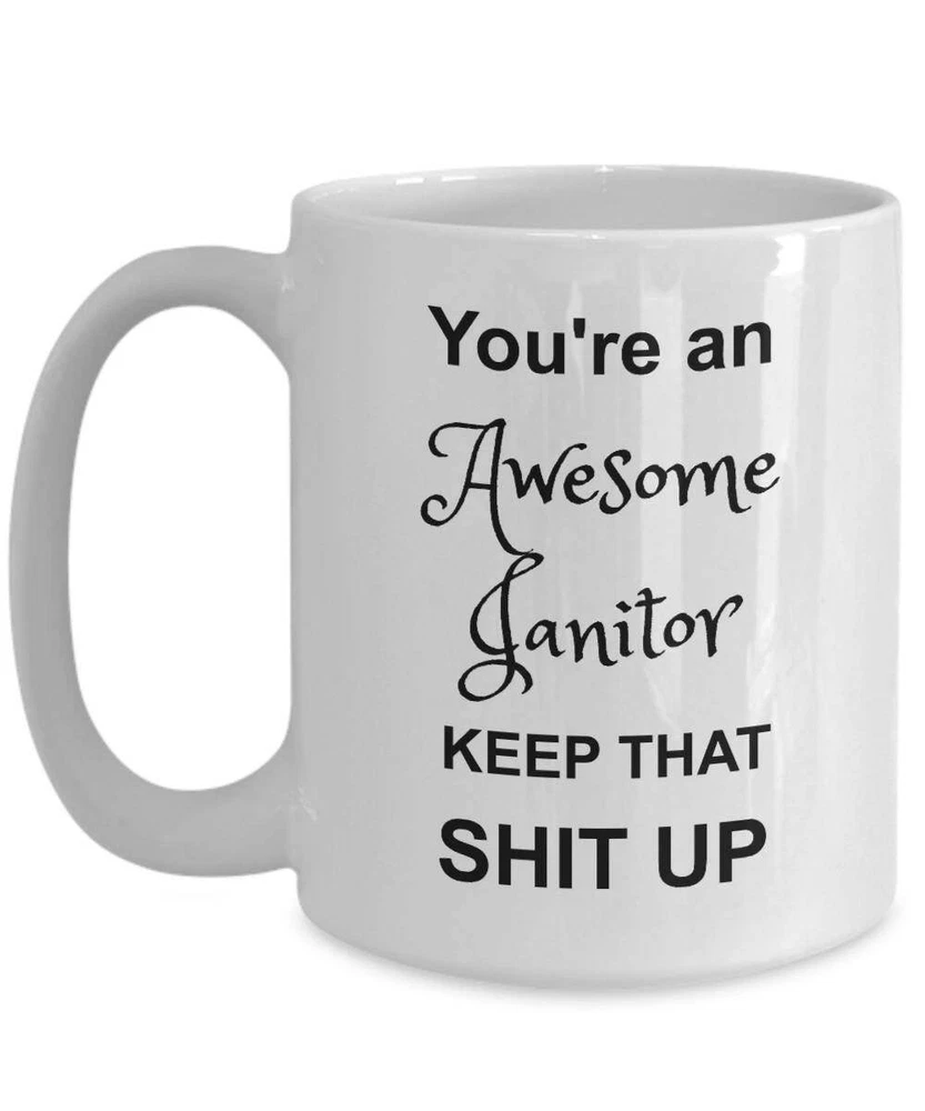 Janitor Mug You're Awesome Funny Appreciation Coffee Gift Cup Product Details.. This high quality 11oz. ceramic white mug has a premium hard coat that provides crisp and vibrant color reproduction sure to last for years. Perfect for all hot & cold beverages. The highest quality printing possible is used. It will never fade no matter how many times you wash it. Material: 100% Ceramic. Print both sides. Dishwasher and Microwave Safe. High Gloss + Premium White Finish. Printed in the U.S.A. Personalized & Custom. We support personalized and custom mug to add custom, when placing an order, you can add notes to the "order note" in shipping address section. Also you can contact us directly via message. Shipping Info. Ready to ship in 1 to 2 business days, All products are made-to-order and proudly printed in the United States. Shipped by USPS and DHL, You will receive your order in 5-7 days. Replace & Refund. All products are defective during shipping broken, chipped will be replaced free of charge. You are not satisfied with the product, we will refund 100% money to you. If any other issues arise, please do not hesitate to message, we would be more than happy to assist you.
