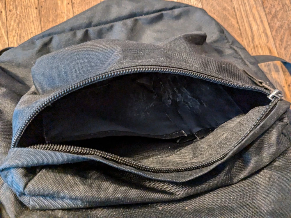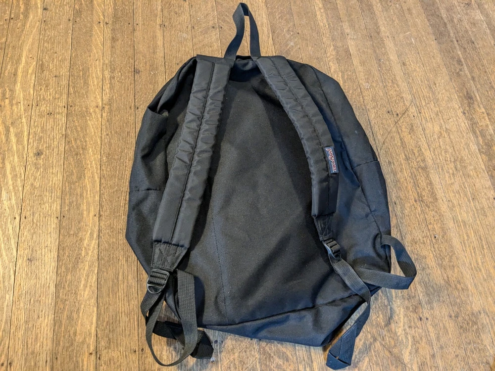 This is in good condition. It does need to be cleaned up a little bit. Perhaps it can be thrown through the washer even. Please ask if you have any questions. I have the measurements and the photos as well. This JanSport backpack is a medium-sized, solid navy blue with black accents. It features a zip closure and adjustable straps, making it perfect for travel or casual use. The backpack is made of durable polyester canvas material and has a fabric lining. It's a great choice for anyone needing a reliable and stylish school backpack. The unisex design makes it suitable for both men and women. The JanSport brand is known for its quality and this backpack lives up to that standard. Made in the United States, it's a practical and fashionable choice for anyone looking for a reliable backpack.