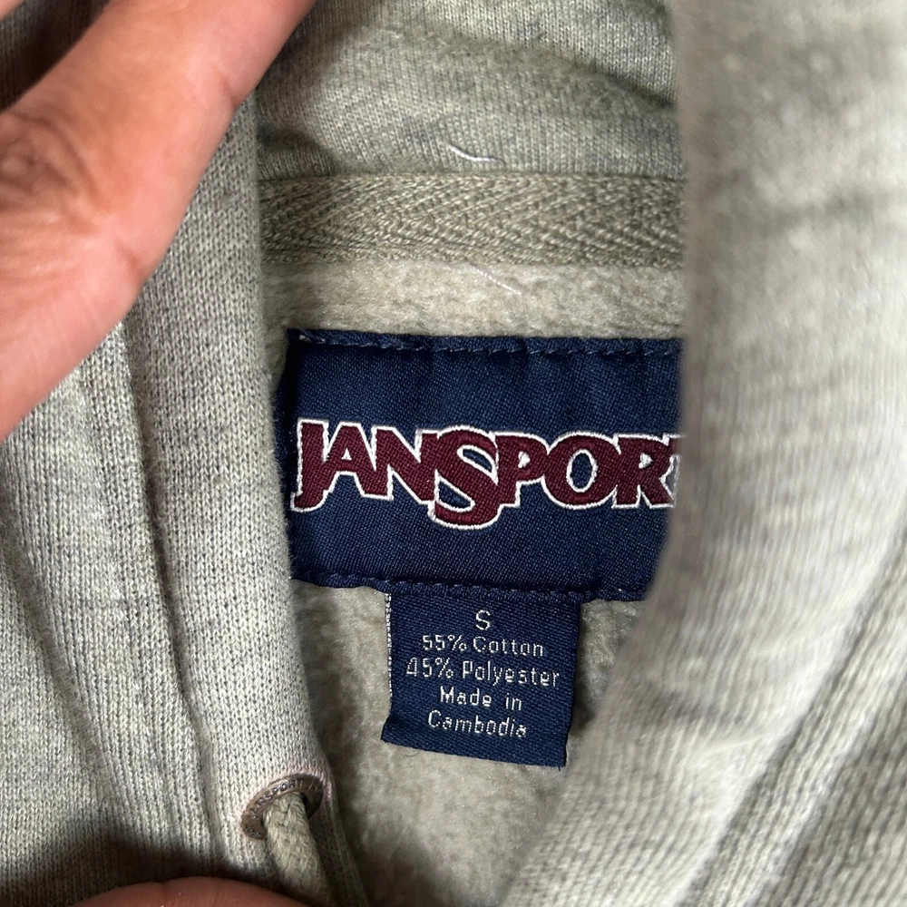 Show your support for the UCLA Bruins with this Jansport hoodie! Made from soft fleece material, this pullover sweater is perfect for basketball games during regular season. The gray color and embroidered team logo make it a stylish addition to any fan's wardrobe. This sweater is designed for men and comes in size small. It is made in Cambodia and is a great way to show your love for the UCLA Bruins. Get ready to cheer on your team in style with this Jansport hoodie! SKU: KG-14-158