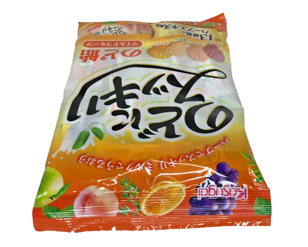 Product: Candy Shape: Shell-shaped Expiration Date: More than 180 days Allergens: Milkingredients, Orange, Soybeans, Peach, Apple Regional Cuisine/Region: Japanese Food Aisle: Pantry Item Weight: Approx. 1416g Number of Servings: 12 gtin13: 4901326037069 Calories per 100 g/mL: 403 Kcal per 100g Packaging: Bag Occasion: Everyday Food Specifications: Contains 13 Herbal Extracts Flavor: Grape Flavor, Peach Flavor, Green Apple Flavor, Orange Flavor Brand: Kasugai Type: Throat Candy MPN: Does Not Apply Serving Size: 118g/ 1 bag UPC: 4901326037069 Country of Origin: Japan