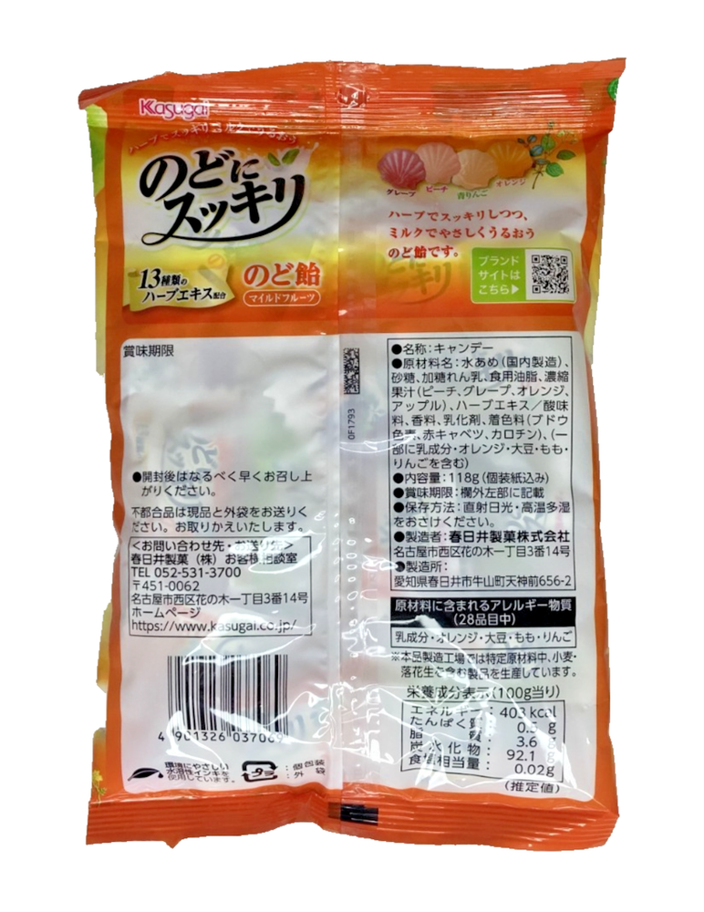 Japan Throat Candy Kasugai Sukkiri Mild Fruit Throat Candy 118g × 12 bags