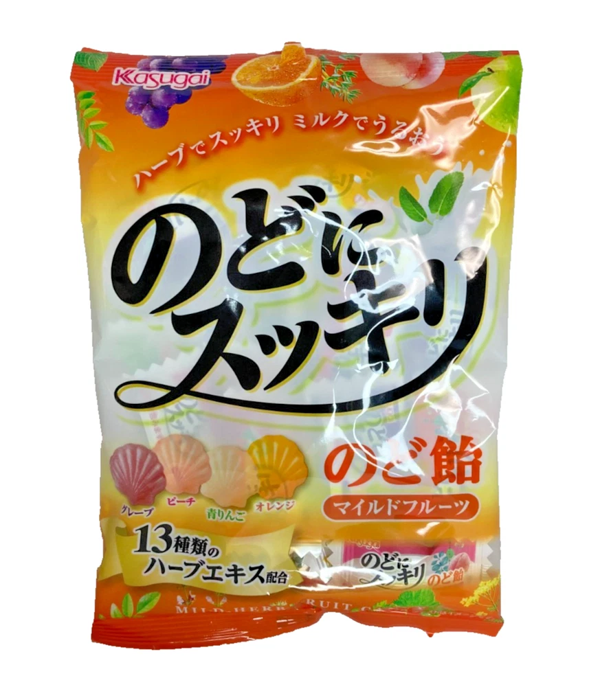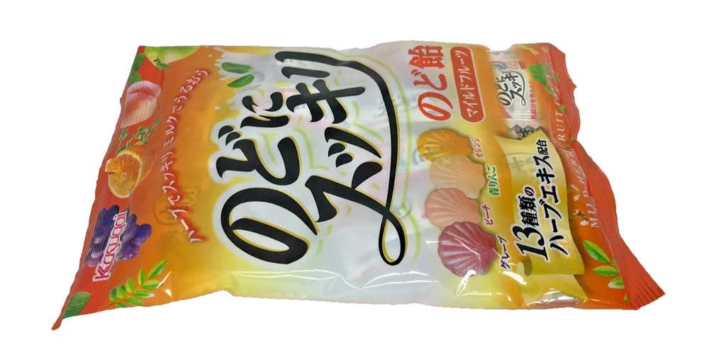 【Product Description】 Refreshing with Herbs, Soothing with Milk A seashell-shaped throat candy featuring a mild, gentle blend of herbs and milk for a refreshing yet smooth taste. Made with 13 natural herbal extracts, it comes in four delightful flavors — Grape, Peach, Green Apple, and Orange. Ingredients / Additives: Glucose syrup (Japan), sugar, sweetened condensed milk, edible vegetable oil, concentrated fruit juices (peach, grape, orange, apple), herbal extract / acidulant, flavoring, emulsifier, coloring (grape color, red cabbage, carotene), (Contains milk, orange, soy, peach, and apple) ------------------------------------ 【Quick Duty Notice】 For U.S. Buyers: Duty Included (DDP). No extra charges on delivery. 🌍 For Buyers Outside the U.S.: Import duties/taxes are not included in the item price or shipping charges. These costs are the responsibility of the buyer and are usually collected by the carrier upon delivery. ------------------------------------ 【What Sets Us Apart】 We source our products from a long-established confectionery wholesaler in historic Kyoto and deliver the latest items. After receiving your order, we procure the freshest stock from the wholesaler's inventory and ship it to you. We carefully pack your order to prevent any damage, using the smallest possible packaging size for safe delivery. 【Notice】 The package design may vary slightly depending on the timing of procurement. 【Shipping Notice】 We ship via international tracked shipping, but please note that international delays may occur. Feel free to contact us if you have any concerns. 【Bulk order】 If you want to buy more than listed, please contact me via message!