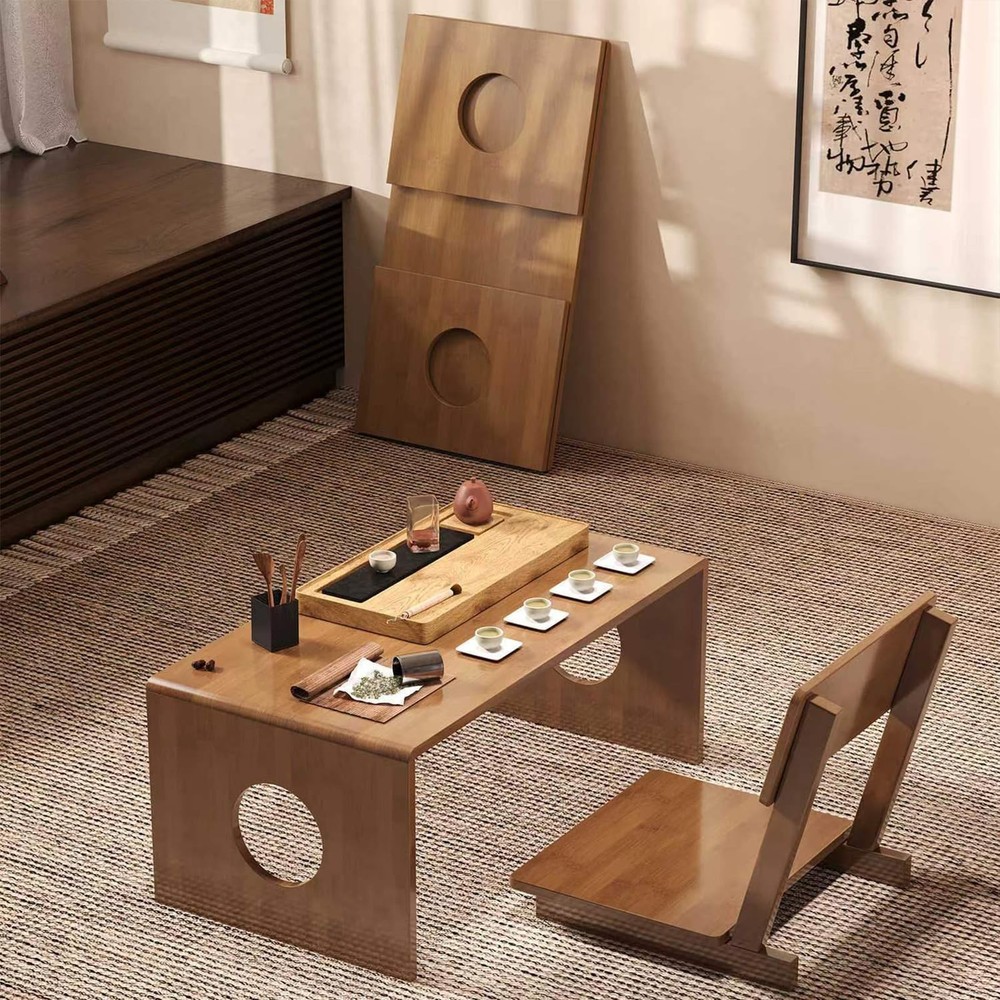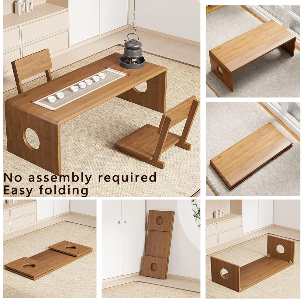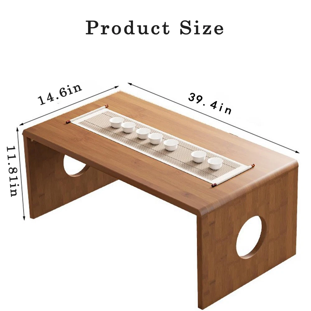 Our Japanese low table, a remarkable piece of Japanese furniture, is a harmonious blend of functionality, style, and environmental consciousness, designed to transform every nook and cranny of your living space. Starting with its Premium Solid Wood Quality, this Japanese coffee table is meticulously handcrafted from 100% top-tier solid wood. The carbonized finish not only accentuates its natural Japanese elegance, making it a captivating centerpiece in any room, but also substantially fortifies its durability. Paired with high-quality hardware, it provides unwavering stability, capable of bearing up to 60 pounds with ease. Maintenance is a breeze too – a simple, quick wipe with a damp cloth is all it takes to keep it looking as good as new, ensuring it remains a smart and long-lasting addition to your home for years to come, just like you'd expect from fine Japanese craftsmanship. Comfort is at the forefront with our Ergonomic Comfort & Expandable design. We understand the importance of a healthy sitting posture, whether you're engaged in a peaceful meditation session on your Japanese floor table, grinding through a workday, or enjoying a meal. That's why the height and shape of this low table have been fine-tuned to perfection. It minimizes stress on your back and neck, while the smooth edges and surface add an extra layer of coziness. And if you need more space, buying 2 or more Japanese tables allows you to effortlessly combine them, creating a larger and more versatile workspace or dining area to suit your ever-changing needs. The All-Purpose Versatility of this Japanese table truly sets it apart. It's a chameleon in the world of Japanese furniture, adapting to your daily routines with ease. Start your mornings on a relaxing note by using it as a snug coffee or tea table. As the day progresses and work calls, it transforms into a reliable laptop workstation, providing a sturdy surface for productivity. Want to showcase your prized decor pieces? It's got you covered. And when hunger strikes, it serves as an impromptu dining spot. But that's not all – it doubles as a bed office table, meditation altar, and seamlessly fits into various settings such as tea rooms, balconies, living rooms, and even outdoor spaces, making it an essential addition to any home, office, or apartment that appreciates the beauty and functionality of Japanese design. Space is often a premium, especially in modern living, and our table's Space-Saving & Portable Folding feature comes to the rescue. Inspired by Japanese design principles, the foldable design of this Japanese low table is a game-changer. When you're not using it, simply fold it flat and tuck it away in a corner or closet, and voila! You've instantly reclaimed valuable floor space. Its lightweight construction further adds to its appeal, allowing you to carry it around effortlessly and place it wherever you need it most, whether it's for a spontaneous gathering in the living room or a quiet moment of relaxation on the patio. Last but not least, our commitment to the environment shines through with Eco-Friendly Excellence. In a world where sustainability matters more than ever, this Japanese coffee table takes the lead. The wood we use is sourced from responsibly managed forests, playing a crucial role in safeguarding our precious ecosystems. The manufacturing process adheres to strict green standards, employing water-based and low-VOC finishes. This not only ensures your safety but also makes a positive impact on the environment. By choosing our table, you're not just adding a stylish piece of Japanese furniture to your home; you're making a conscious choice to contribute to a clean, more sustainable future, all while enjoying the functionality and elegance it brings. In conclusion, our Japanese table is more than just a piece of furniture; it's a lifestyle enhancer, a space optimizer, and an environmental advocate, all rolled into one. It's time to upgrade your living experience with this exceptional creation that embodies the essence of Japanese design. 🧘Safe and Comfortable Design:Rounded and polished edges ensure safety, making this Japanese coffee table child- and pet-friendly. The reinforced joints and thickened legs provide excellent stability, while the smooth surface is easy to clean with just a damp cloth. Its low height promotes ergonomic comfort, whether you’re working, dining, or relaxing 🔄Space-Saving Foldable Design:This folding coffee table features an innovative design that folds down to just 0.6 inches thick, making it easy to store in corners, under beds, or in closets. Perfect for small spaces like apartments, dorm rooms, or temporary use, it maximizes your living area while offering ultimate convenience 🌿Eco-Friendly Bamboo Construction:Crafted from high-quality bamboo, this Japanese coffee table showcases a clear grain and a natural carbonized finish, offering both beauty and durability.Bamboo is a sustainable, renewable resource, making this low coffee table an eco-conscious choice for your home.Its moisture-resistant and scratch-proof surface ensures long-lasting use 💻Versatile for Multiple Uses:With a spacious surface measuring 39.5 x 14.6 x 11.81 inches, this low coffee table is ideal for holding laptops, books, coffee cups, or decor.Whether used as a folding coffee table, computer desk, kids’ study table, or even a temporary dining table, it adapts to your lifestyle effortlessly 🔧Tool-Free, Quick Assembly:No tools are needed for assembly—simply unfold and lock the legs into place. The thickened legs and secure locking mechanism provide stability, preventing tipping. Lightweight yet sturdy, this foldable coffee table is perfect for use on floors, beds, outdoors, or any other space you need 🎁 Great for Minimalists & Small-Space Living:A stylish, functional upgrade for apartments, studios, or outdoor adventures.