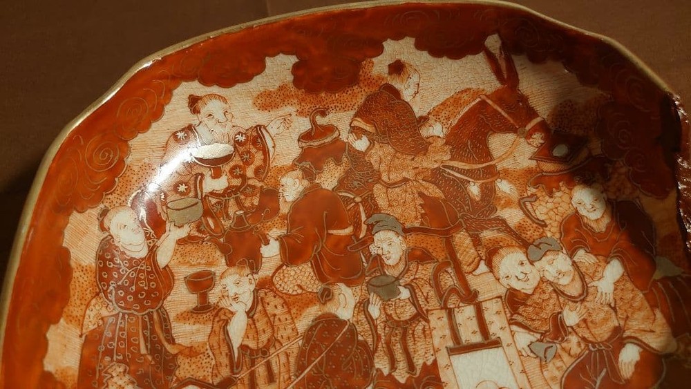 $ 429.79Japanese Kutani Ware Old Iidaya Miyamotoya kiln red painting Kuroku Yamada Edo p