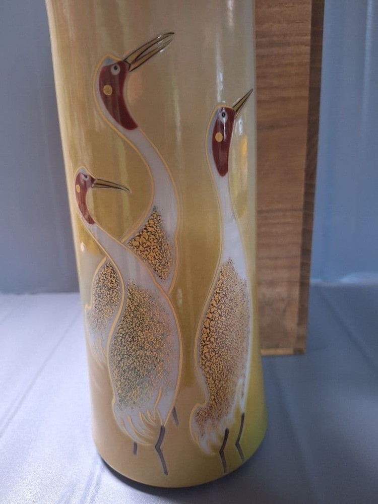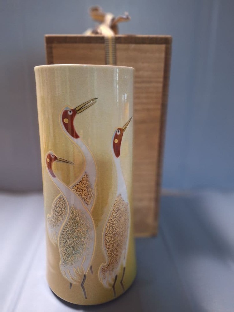 Japanese Kutani Ware Yamanaka Seisaku "Tsurumai" vase No. 4 pottery artwork