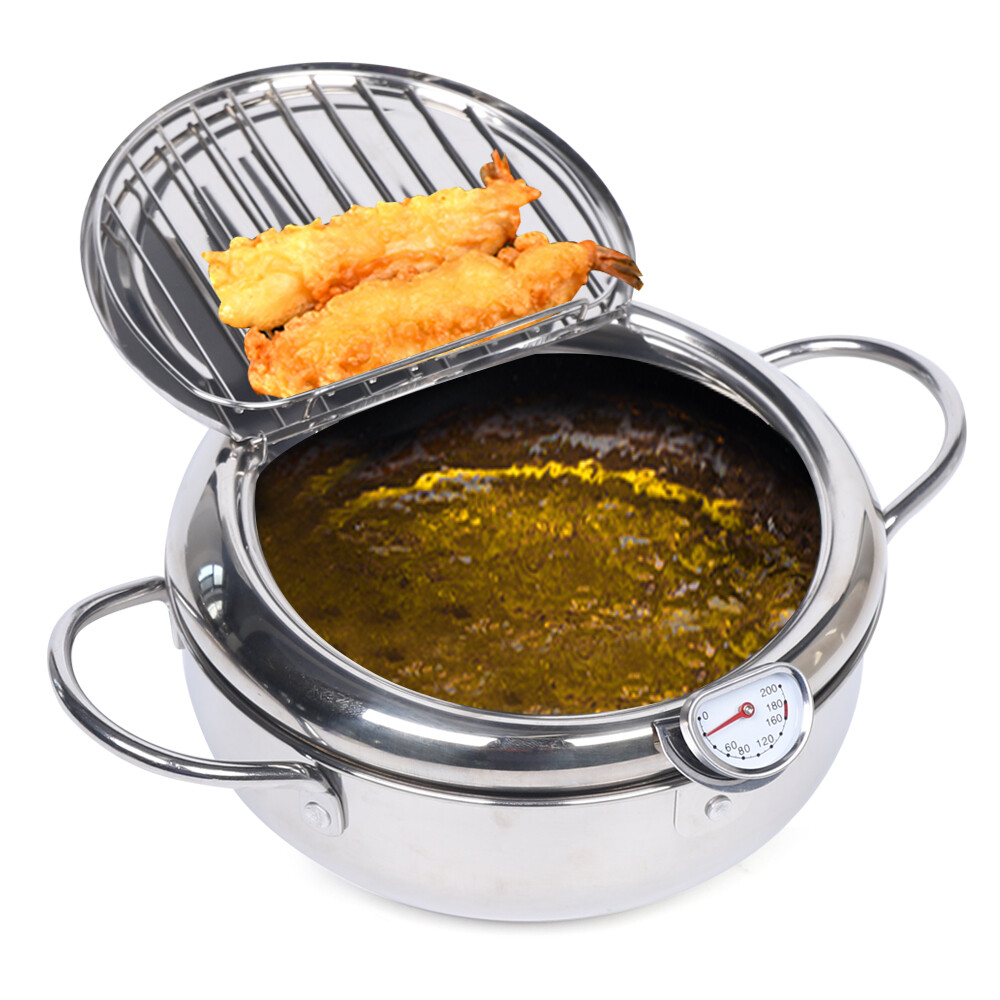 This Japanese-style deep frying pot is a game-changer for crispy, perfectly cooked tempura and fried foods! The built-in thermometer ensures precise temperature control, while the high-quality 304 stainless steel construction makes it durable and easy to clean. Its compact 2.2L size is ideal for home kitchens, and the sleek silver design looks great on any stovetop. No more guessing—just golden, restaurant-quality results every time. A must-have for frying enthusiasts!