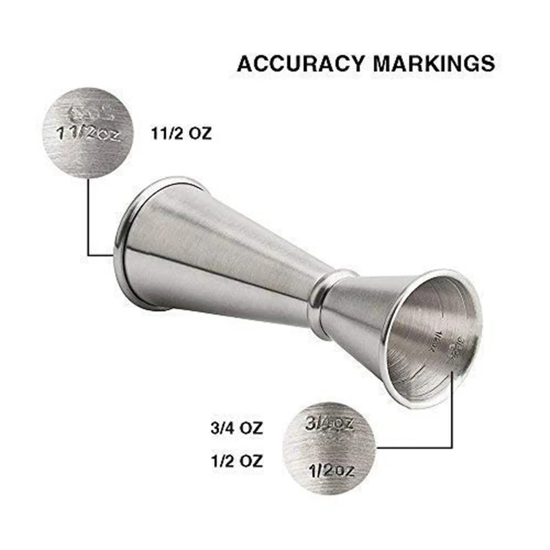 Japanese-Style Double Cocktail Jigger measures ingredients for mixing beverages and making craft cocktails and other mixed drinks Made from stainless steel with brushed finish,Copper Plating,Gold Plating,Gunmetal Black, precise measurements; versatile addition to flatware and bar accessories Smaller jigger measures up to 1-ounce (30-milliliters) with 0.5-ounce (15-milliliters) and .75-ounce (22-milliliters) increments marked on the inside Larger jigger measures up to 2-ounces (60-milliliters) with 1.5-ounce (45-milliliters) increment marked on the inside