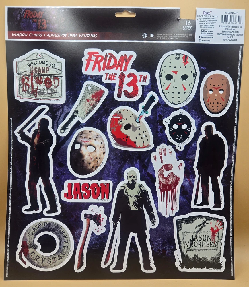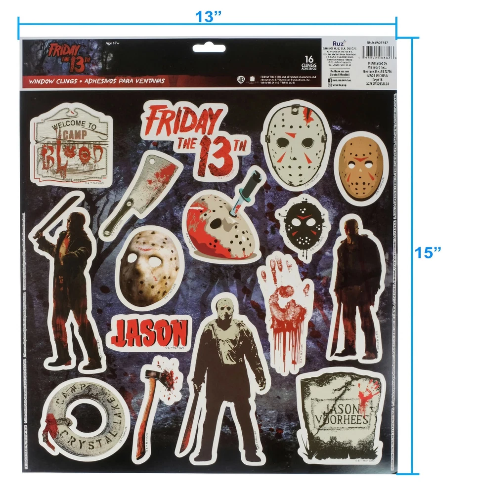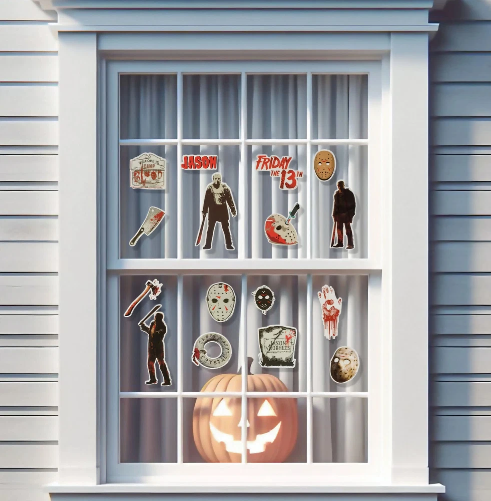 Jason Voorhees- Friday the 13th 16 Piece Vinyl Coated Static Window Clings BRAND NEW SMOKE FREE HOME FREE SHIPPING