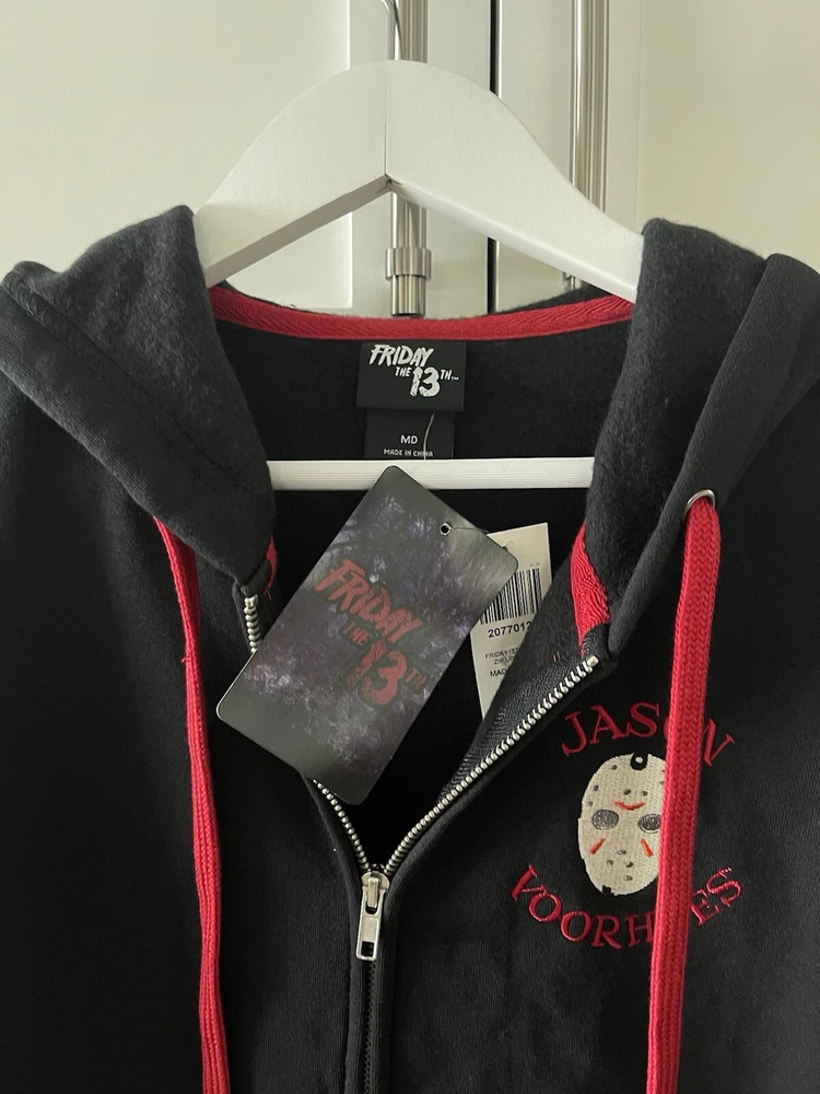 Jason Voorhees (Friday the 13th) Zip Up Logo Hoodie Sweatshirt Size M Horror NWT. The day everyone fears!