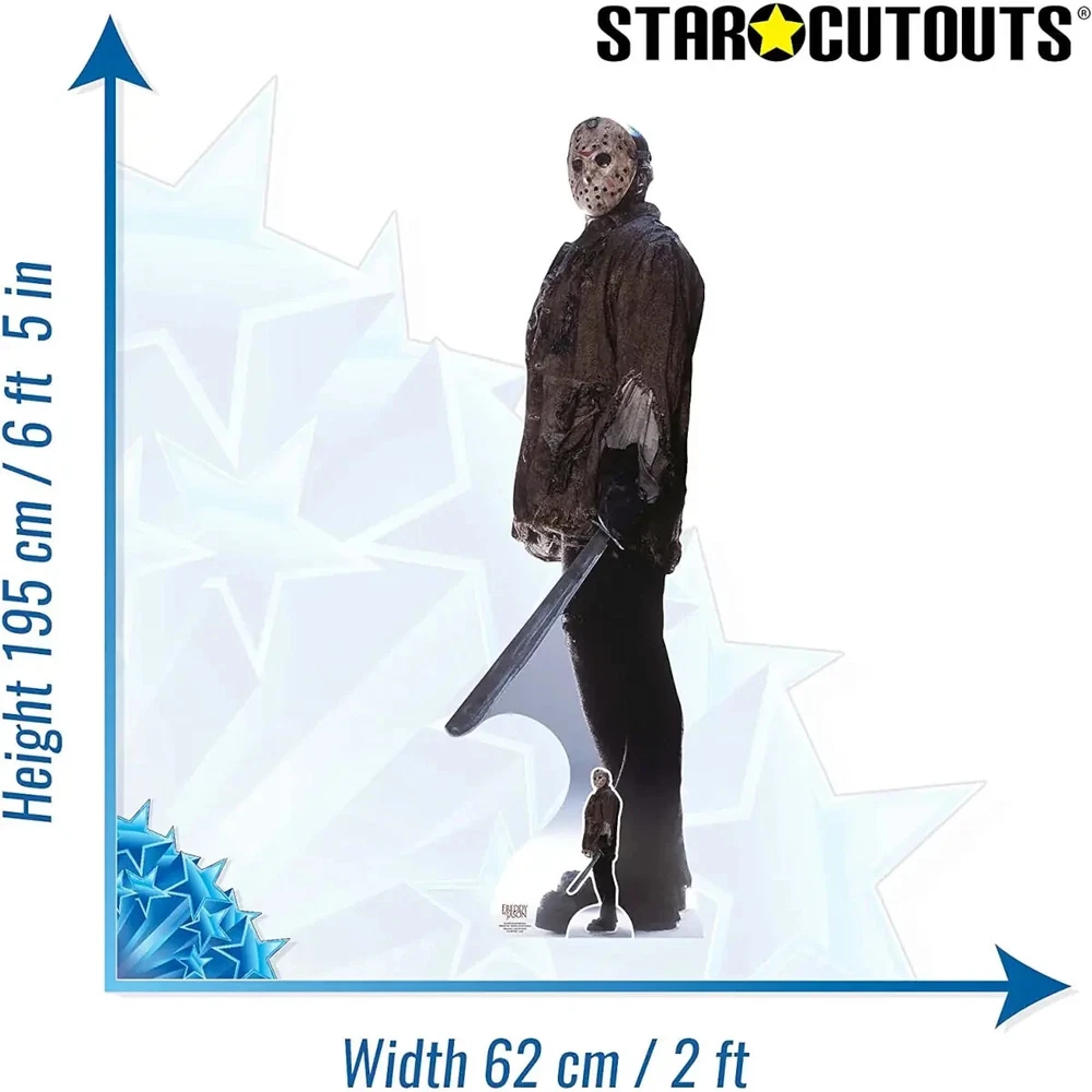 Bring the terror of Camp Crystal Lake to your space with this officially licensed Jason Voorhees cardboard cutout set. Featured in Freddy vs. Jason, the iconic slasher is depicted wielding his signature machete, making this a must-have for horror fans. Key Features: Lifesize Dimensions: The lifesize cutout captures Jason in his menacing stance, complete with his infamous hockey mask and machete. Mini Cutout Included: A smaller version is perfect for desks, shelves, or compact displays. Realistic Design: Intricately detailed with lifelike textures, including Jason’s weathered clothing and mask. High-Quality Printing: Vivid, high-resolution graphics bring the horror legend to life. Freestanding Structure: Fold-out supports on the back allow for stable and easy display. Durable Construction: Made from premium-quality cardboard for lasting use. Versatile Decoration: Ideal for Halloween parties, horror-themed events, or as a standout piece in a movie memorabilia collection. Officially Licensed Product: A genuine collectable honouring the Freddy vs. Jason film. Product Details: Dimensions: Height 195cm x Width 62cm Comes With Free Mini Tabletop Cutout Official Licensed Product Looks Amazing Alone or When With Other Cutouts in the Range Simply Pop Out, Unfold Easel & Erect Folds Away For Easy Storage & Delivery