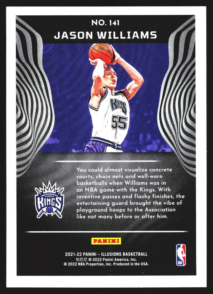 You will receive a Near Mint or Better, Jason Williams, 2021-22 Panini Illusions, , 141 Sacramento Kings card PLEASE NOTE: SOME CARDS THAT GO THROUGH OUR SCANNER MAY APPEAR TO HAVE LINES THROUGH THEM. THEY ARE NOT ACTUAL SCRATCHES, SIMPLY FALSE IMAGE LINES. WE WILL NOT INTENTIALLY SELL, DAMAGED CARDS. NEW CARDS LISTED DAILY ORDERS SHIP NEXT DA Y (Weekends as mail service is available) VISIT OUR STORE FOR MORE DEALS! USE THE SEARCH ICON IN THE STORE TO FIND YOUR FAVORITE TEAMS & PLAYERS! Be sure to save us as sellers to be the first to be notified when new and exciting cards are posted! Please note, we are not professional graders, and the condition of the card you purchased is highly subjective. Please refer to the high quality scans of the card you are viewing, and determine the condition of the card for yourself. Feel free to reach out with questions! All cards are in EX-NM+ condition, unless stated otherwise Chrome cards from various brands might have minor light surface scratches, which is typical with these type of cards. Any major, deep scratches or major surface issues will be noted, if present. We take pride in the condition of all of our cards, including commons. Our promise to you, is that we will not sell a card we would not buy ourselves. Of course things slip by, however customer service is our #1 Priority, and we are always here for a message for ANY, and ALL issues. Thank you very much for stopping by, feel free to reach out! - Titan (Son) & Andy (Dad)
