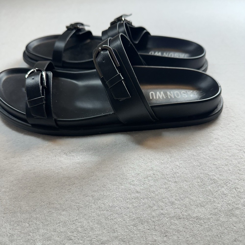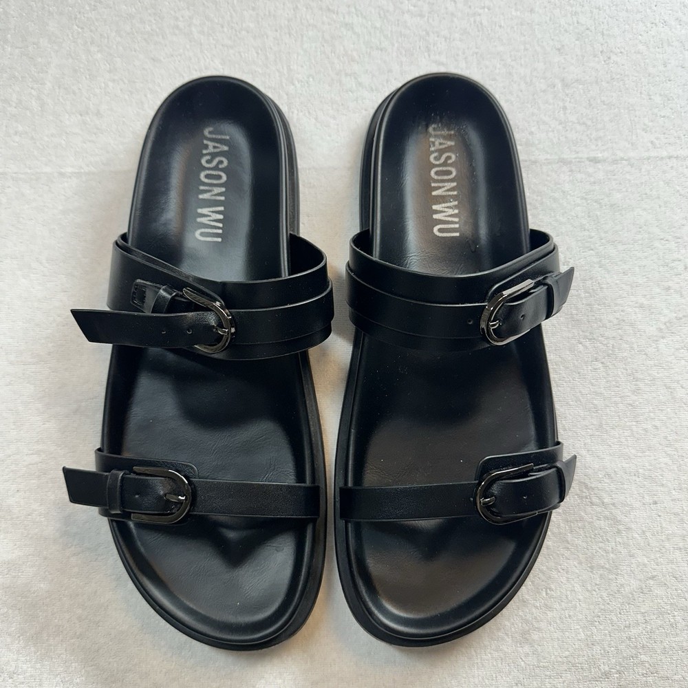 Jason Wu Rhonda Black Double Strap Buckle Slide Sandals Women’s Size 7.5 casual Size 7,5 Color Black Material leather
