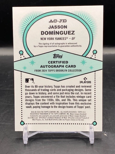 Jasson Dominguez RC 2024 Topps Brooklyn Collection AC-JD Autograph Blue 30/40 NYY