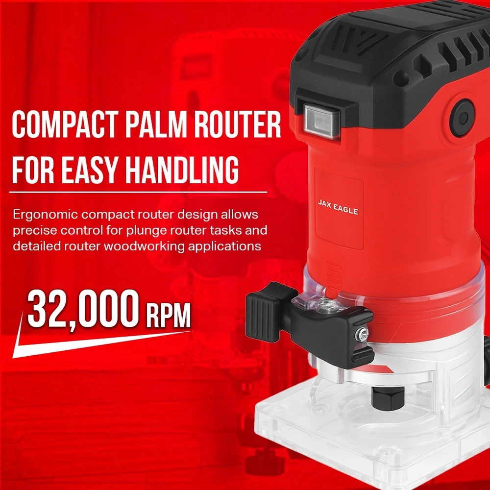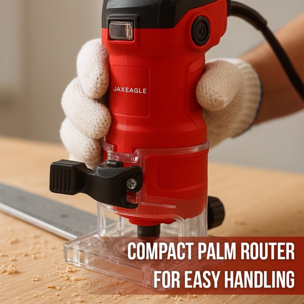 Upgrade your woodworking projects with the Jax Eagle WT635M Router Tool, designed for exceptional versatility, control, and precision. This powerful wood router features a 580W high-speed motor that reaches an impressive 32,000 RPM, making it ideal for wood routers for woodworking tasks like trimming, grooving, slot cutting, and edge finishing. Whether you are working on furniture, cabinetry, or fine detailing, this compact router ensures smooth, clean cuts in every pass. As a trim router and palm router, the WT635M offers ease of handling and improved maneuverability for precise work on edges and corners. Its 1/4-inch (6.35mm) collet size allows compatibility with a wide variety of router bits, suitable for both DIY woodworking and professional applications. Perfect for use as a plunge router, this versatile machine handles plunge cuts for grooves and decorative inlays with confidence. Built to meet the needs of serious craftsmen and hobbyists, this router woodworking tool is engineered for both wood working and shaping, ensuring high-quality finishes in a variety of materials. Its durable body and stable construction promise long-lasting performance, making it a great addition to any router table with router combo kit setup. Whether you're using the WT635M as a compact router or a dedicated router tool, it delivers professional results with every project. This machine is also compatible with multiple accessories for routers for woodworking, offering flexibility across projects like furniture building, trimming doors, or crafting custom wood pieces. Its lightweight design reduces fatigue during prolonged tasks, and the soft grip ensures comfort during operation. For precise, fine detail tasks or large furniture assembly, this wood router remains reliable and efficient. Technical Specifications: Voltage: 110V ~ 60Hz Power Input: 580W Variable Speed: 32,000 RPM Bit Size: 6.35mm (1/4 inch) Applications: Trimming, Slot Cutting, Grooving, Edge Finishing What’s in the Box: Jax Eagle WT635M Router Tool 1/4-Inch Collet Chuck Edge Guide Wrench for Easy Bit Changes User Manual Perfect for router woodworking, furniture crafting, and cabinet detailing, the WT635M router tool ensures flawless results in every cut. Equip your workshop with this essential wood router and experience true craftsmanship precision today.