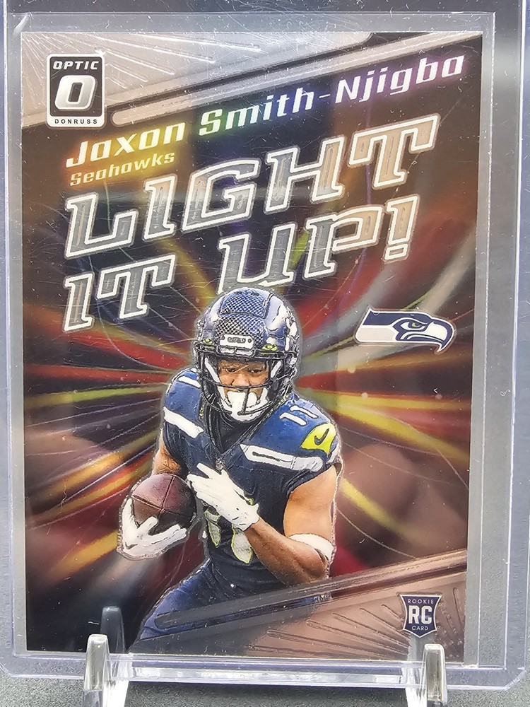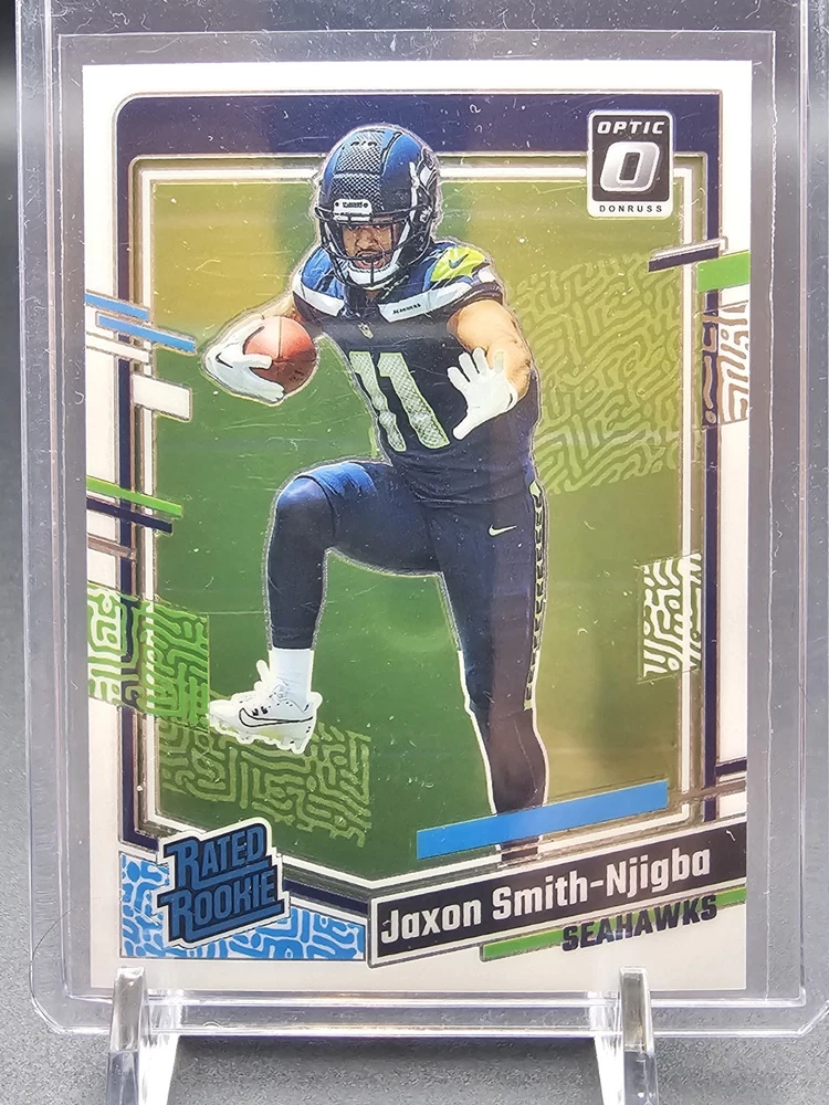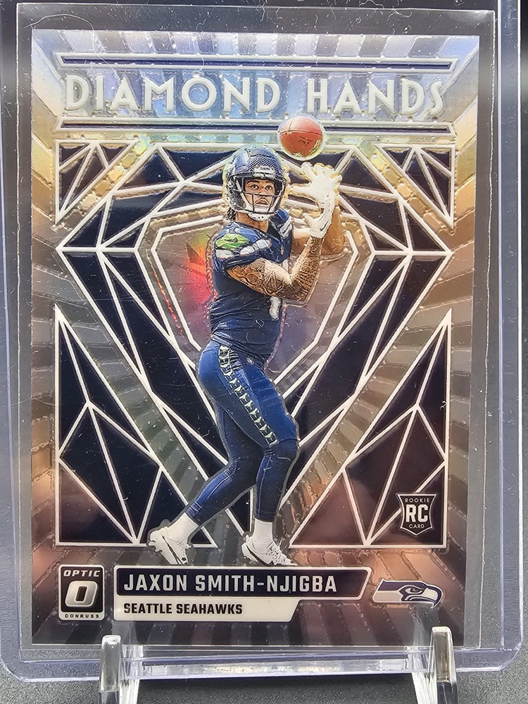 This lot includes 5 Donruss Optic rookie cards of Jaxon Smith-Njigba from the Seattle Seahawks. Manufactured in 2023 by Panini, these original cards feature a parallel and insert design. They are part of the National Football League (NFL) series and are in English language. A must-have for fans and collectors of football trading cards.