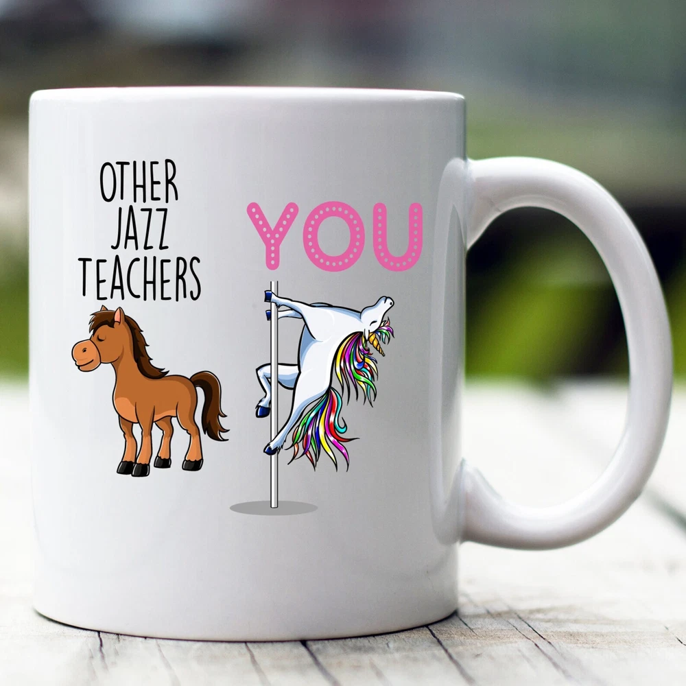 Jazz Teacher Gift Jazz Teacher Mug Jazz Teacher Funny Unicorn Mug Jazz Teacher Cup Jazz Teacher Coffee Mug Best Jazz Teacher Mug Product Details.. This high quality 11oz. ceramic white mug has a premium hard coat that provides crisp and vibrant color reproduction sure to last for years. Perfect for all hot & cold beverages. The highest quality printing possible is used. It will never fade no matter how many times you wash it. Material: 100% Ceramic. Print both sides. Dishwasher and Microwave Safe. High Gloss + Premium White Finish. Printed in the U.S.A. Personalized & Custom. We support personalized and custom mug to add custom, when placing an order, you can add notes to the "order note" in shipping address section. Also you can contact us directly via message. Shipping Info. Ready to ship in 1 to 2 business days, All products are made-to-order and proudly printed in the United States. Shipped by USPS and DHL, You will receive your order in 5-7 days. Replace & Refund. All products are defective during shipping broken, chipped will be replaced free of charge. You are not satisfied with the product, we will refund 100% money to you. If any other issues arise, please do not hesitate to message, we would be more than happy to assist you.
