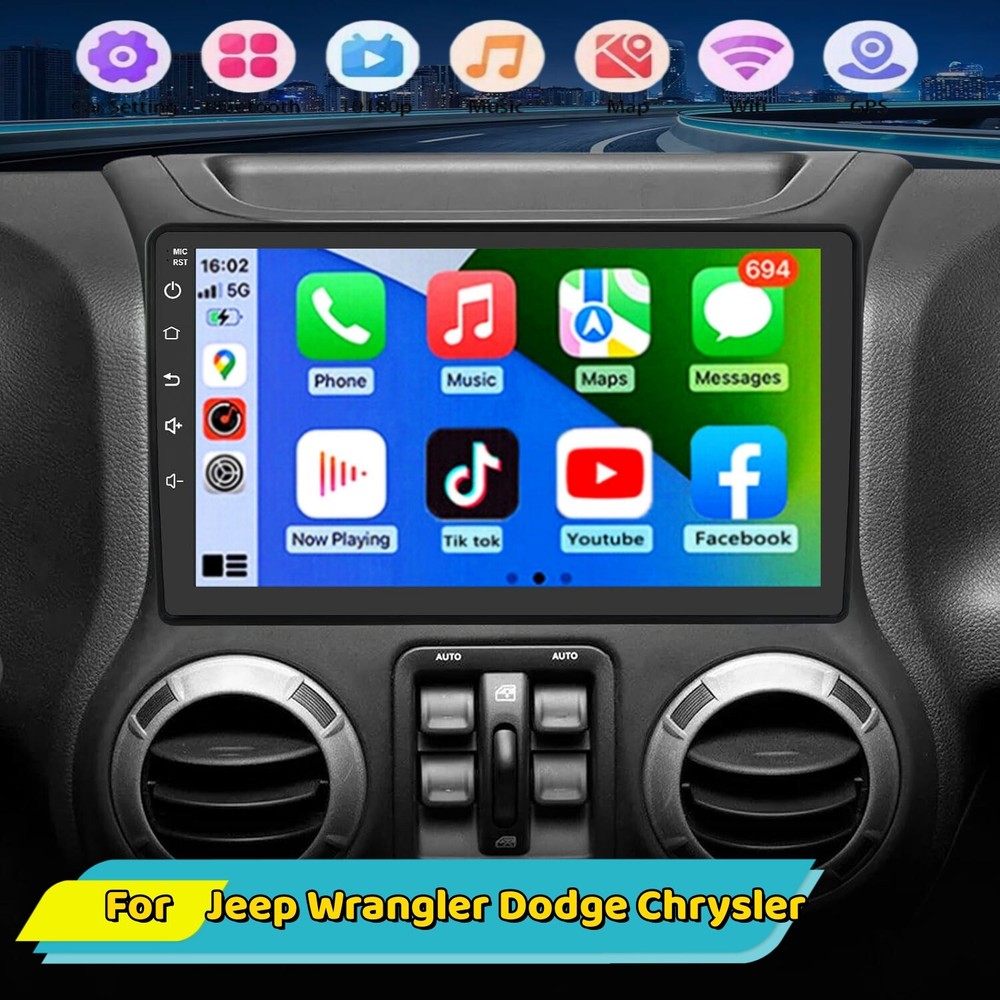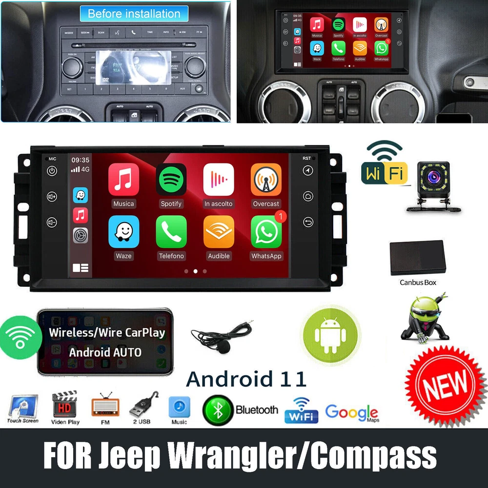 Features 1. Android 11.0 operating system 1G RAM + 16GROM 2. Support wireless/wired Apple CarPlay & Wired Android AUTO 3. Wifi connect: Built-in Wifi module, can connect to internet by wifi hot spot, download APP to watch online video etc. 4. GPS navigation: Built-in navigation module, support on-line off-line navigation, free navigation map 5. Bluetooth function: Built-in bluetooth module, support Bluetooth phone connect, handsfree for calling or Bluetooth music play 6. Rear view function: Support Rear view camera input, backing car more safer and convenient (Free camera come with stereo) 7. Radio tuning: Support FM Radio, FM1/FM2/FM3 87.5-108 MHz, you can listen the radio which is your interested. 8. Rear dual USB port input: Support rear cable USB input, can play music/movie Or wire CarPlay Android Auto 9. Screen: 2.5D Capacitive touch screen, 1280*720 resolution, support 1080P video 10. Improve sound quality with equalizer, use DSP EQ to adjust the sound to render better results 11. Split screen function: You can use 2 APP at the same time when you use split screen function 12. Optional accessories: DVR(front camera optional) OBD2: Support OBD2(ELM327 OBD2 adapter optional) Unit Functions: Original Factory Style Car radio for Jeep Wrangler Dodge CANBUS included 2 DIN 7 inch TFT Capacitive Touch Screen. Android 11.0 system 1.3GHz x 4 Quad Core CPU with 1G DDR3 Build in 16G Flash Memory for Music/Navigation Map Data/Video FM Radio, Auto Memory Store/Preset Scan Build-in Bluetooth 5.0 with A2DP/Hands Free/Phone book 2 x Rear USB Input Build-in GPS receiver, compatible with Waze/Navfree/Google Map etc Back Camera Input Preset Multi EQ Settings Volume/Fader/Balance/Treble/Bass Control Multimedia Player Compatibility with all format 2 Channel RCA Output 2CH rear video input 2CH rear RCA input 2CH rear audio output build in WIFI Steering Wheel Control ●Wireless & Wired Carplay: wired or wireless Carplay in-vehicle system can closely integrate the user's iOS device and iOS experience with the dashboard system. Users who use wireless Carplay can connect to the car system via Bluetooth to realize voice-controlled navigation, make calls, send and receive messages, and listen to music. It is only available for iPhone (ZLINK APP) ● Wireless & Wired Android auto: wired or wireless Android auto in-vehicle system can closely integrate the user's Android device and Android experience with the dashboard system. Users who use wireless Android auto can connect to the car system via Bluetooth to realize voice-controlled navigation, make calls, send and receive messages, and listen to music. It is only available for Android phone(Android phones need to download android auto APP) Specifics Voltage:DC12V System:Android 11.0 CPU chip:A7 Screen size:7inch GPS:Support Power amplifiy chip:YD7388 Internet:WIFI Audio format:MP3/WMA/MP2/OGG/AAC/M4A/MA4/FLAC/APE/3GP/WAV Video format:Mpeg1/Mpeg2/Mpeg4/SP/ASP/GMC/XVID/H.263/H.264 Picture format:BMP/JPG/GIF/PNG Language:Chinese(Tradtional)/Chinese(simplify)/English/French/German/Italian/Spanish/Portuguese/Turkish/Arabic/Hebrew/Polish/Indonesian/Czech/Danish/Filipino/Dutch/Greek/Ukrainian/Indian/Thai/Japanese/Korean Product included: 1 x Android Car Stereo 1 x Power Cable 1 x GPS antenna 2 x USB Cable 1 x RCA input and output cable 1 x canbus 1 x reverse adapter cable 1 x camera input cable 1 x Backup Camera 1 x Microphone Purchase FAQ: ★ This product supports steering wheel control buttons ★ Support non-original camera, support multiple phase mechanism (the original camera is not supported by default) ★ All machines include RCA cable, support subwoofer connection ★ The original car functions are not supported by default, such as air-conditioning settings ★ The product does not include the frame, please see the accessories map when purchasing. Payment Returns Shipping About us Contact us Payment 1.We accept only PayPal payment. 2.All major credit cards are accepted through secure payment processor PayPal.(* If you use e-check on PayPal, delivery may take longer, as we will hold your order until your e-check clear). 3.Payment must be received within 7 business days of auction closing. 4.Please make sure your PayPal and eBay address is correct. If not, please correct it before payment. Thank you. 5.Custom duties, taxes, or charges are not included in the cost you pay to us. 6.Please check with your country's customs office to determine what these additional costs will be prior to bidding/ buying. Returns 1.If you are not satisfied when you receive your item, please return it within 30 days for a replacement or money back. Please contact me before you return it. 2.Defective items Must Be reported and returned to us within the warranty period (and in the original packaging, if possible). You must tell us what the defect is and give us your eBay ID. 3.Return shipping is to be paid by the Buyer. Shipping 1.Payments are expected within 7 days after the last winning auction is closed; Otherwise Unpaid Item Dispute will be filed with eBay。 2.All items ship within 1~3 business day after payment is comfirmed ,Shipping is complimentary within the lower 48 US States. 3.We Do Not Ship to PO/APO Boxes, HI or Alaska 4.We Do Not Ship Outside of the Continental US 5.For large items that require Freight shipping a valid phone number is required to call and schedule your delivery。 About us 1. As a new seller, we really need your trust and support, if you are satisfied with our goods and services, please give us a positive comment, thank you ~~~///(^v^)\\\~~~ 2. We attach great importance to and care about our customers, if you do not meet the heart of the place, please contact us in time, we will give you a proper solution. 3. Win-win cooperation and mutual benefit. Thank you again for your support and understanding. Contact us 1. If you have any questions, please feel free to send email to us, Our customer service team will give you a satisfied response, we are committe