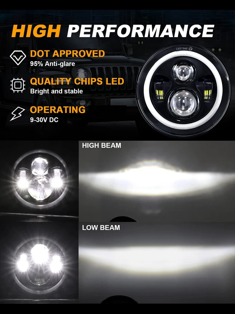 Package list: 2PCS 7 Inch 100W LED Round Headlights 2PCS 4 Inch Fog Lights 2PCS Smoked Turn Signal Lamp (6pcs total) Description: *Newest LED Projector Headlights, 7 inch 105W round led headlights with 8000LM high beam and 4800LM low beam at 6000K for each headlight, above 80000 hours lifespan. *High quality chip LED Fog light provide extra great light to help you driving safely on hard road or bad weather! *LED Turn signal light applies smoked materials, a premium material of gloss finish, instead of frosted glass to create a sense of luxury and secrecy. *Easy to installtion, plug & play.DOT Approved. Specifications: 7\\\\'\\\\' 105W LED Round Headlight: * LED Color: 6000K-6500K White * Luminous Flux: 8000 Lumen High Beam / 4800 Lumen Low Beam * Headlight Type: High/Low Beam(white) / DRL(white) / Turn Signal(red) * Power: 100W/PC * Size: 7\\\\'\\\\' inch * Color: Black * Material: Diecast Aluminum Housing+pc * Voltage: DC 9V~32V * Lifespan: More than 80,000hours. 4\\\\'\\\\' Fog Lights: *LED Color: 6000K White *Power: 60W/PC *Voltage: DC 9V~16V *Luminous Flux: 4000 Lumens/PC *Waterproof: IP67 *Size: 4\\\\'\\\\' Inch Foglight *Color: Black *Material: Aluminum die cast housing+pc Turn Signal Lights: *Item Type: LED Turning Light *LED Color: 2000K(Yellow) *Size: 8.8*8.8*7.2cm *Color: Smoked Lens *Material: Durable ABS Plastic *Voltage: DC9-16V *Lifespan: More than 80,000hours. Warranty: 5 years Fitment: Fit For Jeep Wrangler JK JKU 2007-2018