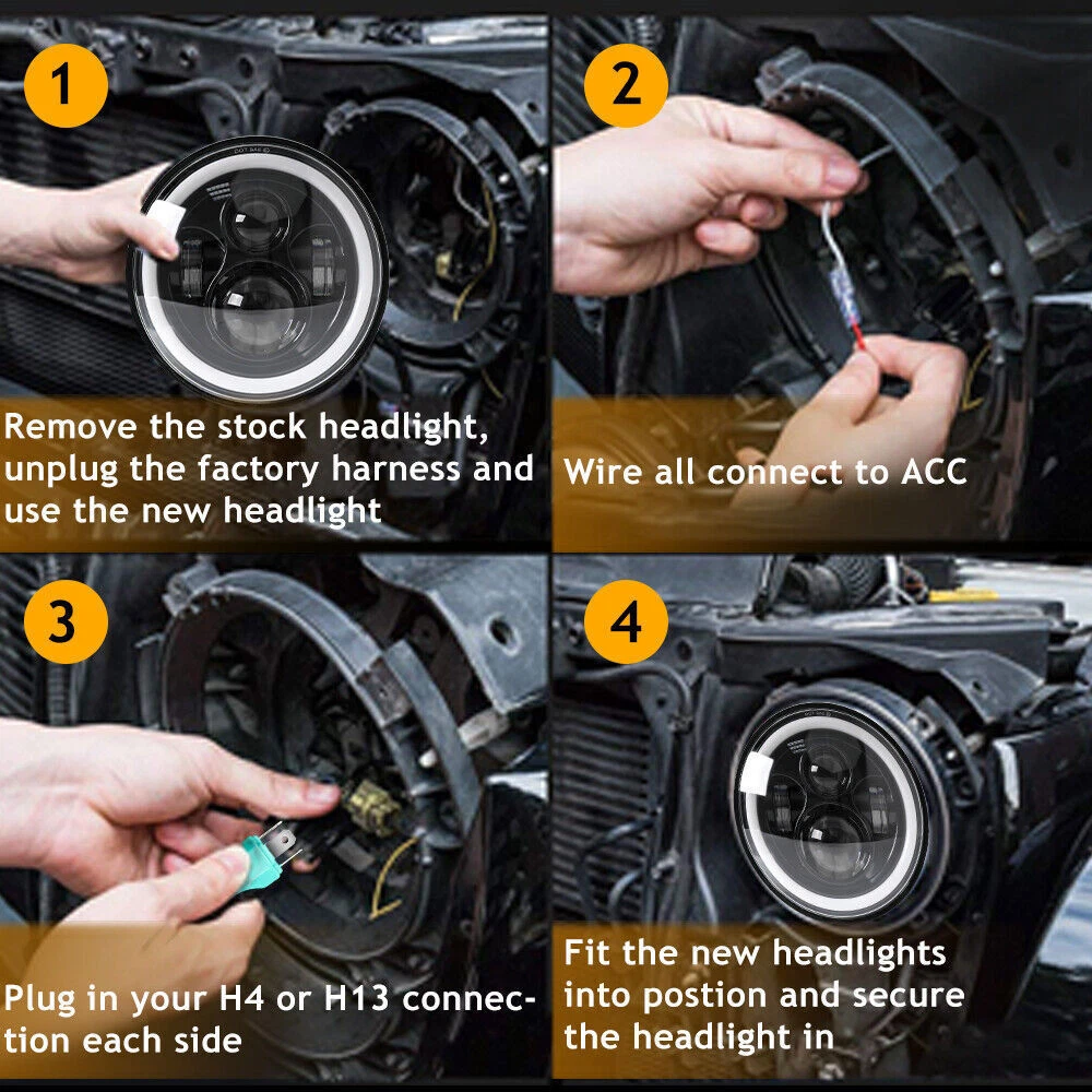 Returns: We gladly accept returns within 30 days of delivery. If you’d like to request a return, refund, or exchange, please send us a message with the reason. Your feedback helps us continue to improve our service. Package include: 1pc 7" round led headlight 1pc H4 adapter Fitment: for Jeep Wrangler JK Specification: - Voltage: DC 9V to 32V (fits 12V, 24V vehicles) - Wattage: 130W - Lifetime: More than 80000 hours - Color Temperature: 6000K White - Luminous Flux: High beam 13500lm; Low beam 6300lm - Waterproof Rating: IP 68 - Dimensions: 7 Inch - Surface Finish: Black Housing - Connection: H4 Plug - Material: high quality black ABS housing Features: Low Power Consumption,Super Bright ; DOT, IP68 legal light,legal on the road. With high grade LED driver, much brighter and durable than Halogen or HID Headlight. 13500lms on high beam and 6300lms on low beam, 6000K pure white light,over 80000 hours above life time. Easy installation-Plug & Play,H4 Adapter Included - Usually in 20 minutes or less,no need extra decoder anymore! 100% High-Performance led lamp is more brighter 3.5 times than other stock lights. Really lights up the road for safer driving. The anti-flicker is integrated with circuit board. Perfectly avoid flickering. Specification: - Voltage: DC 9V to 32V (fits 12V, 24V vehicles) - Wattage: 130W - Lifetime: More than 80000 hours - Color Temperature: 6000K White - Luminous Flux: High beam 13500lm; Low beam 6300lm - Waterproof Rating: IP 68 - Dimensions: 7 Inch - Surface Finish: Black Housing - Connection: H4 Plug - Material: high quality black ABS housing Fitment: For Jeep Wrangler JK Package include: 1pc 7" round led headlight 1pc H4 adapter Payment: Please make sure your eBay and ebaypayment address is correct before you pay. Our orders are usually shipped within 3 business day (excludes weekends and public holidays) after cleared payment by express fast shipping. Shipping: Package can be shipped out to you within 3 working days from USA. The default expected delivery time is 3-7 working days Orders made on Saturdays, Sundays, and holidays will be processed on the next business day and will be shipped within 48 hours. Returns: Products can be returned. But, If the products didn't have any problems, buyer should pay for the return shipping cost. It's really important that you love your purchase from us. If you would like to Returns, Refunds & Exchanges, Please send ebay message to us, indicating the reasons and problems, to help us improve our service. Buyer has 30 days to return the item from the date the item was received. Buyer is responsible for all return shipping charges. We will be responsible for paying the resend package. Contact us: Customer satisfaction is very important to us and our feedback rating reflects this satisfaction. If you have any question or concern, please contact us via eBay message. We respond to all eBay messages as quickly as possible. Though your question will usually be answered very soon, please allow us up to one business day before you start thinking your message is neglected or the reply is avoided, because there would be time difference, non-working hours or public holidays that have prevented us from making an instant response. On May 30, 2025 at 09:32:52 PDT, seller added the following information: