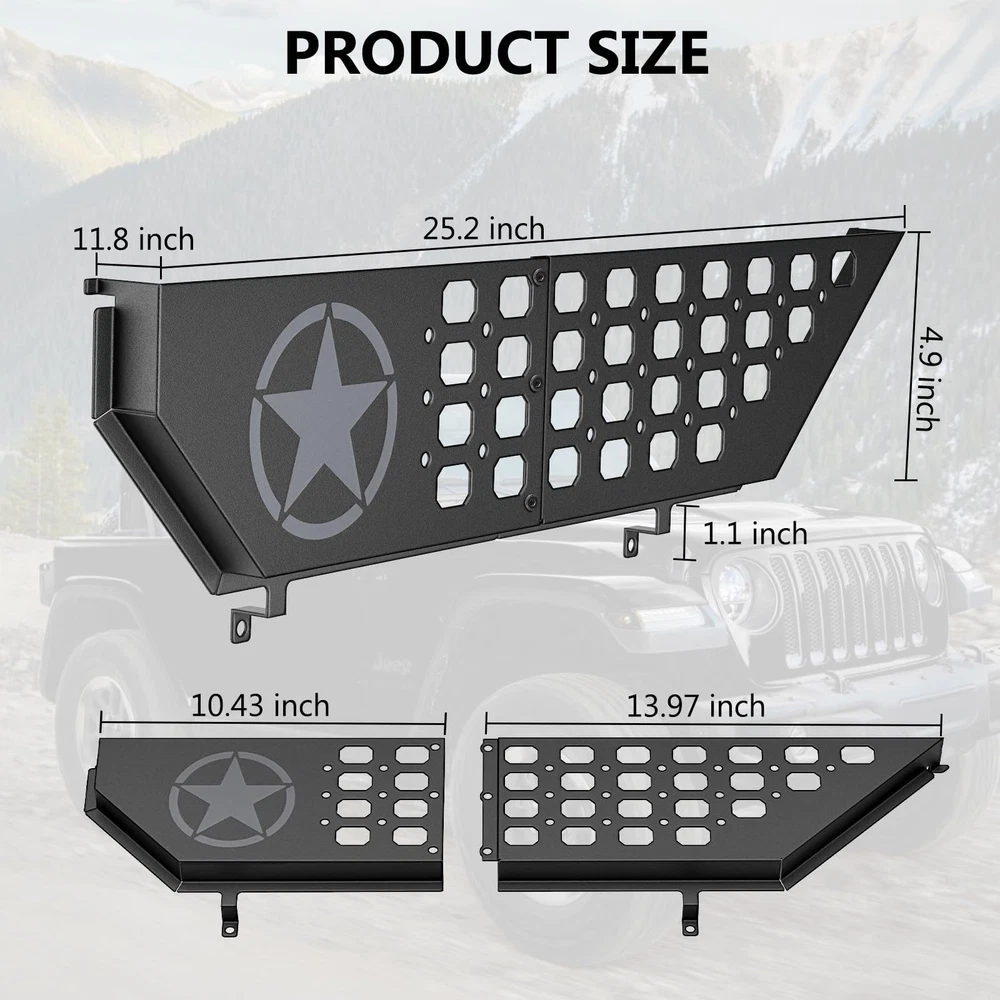 Metal Front Door Storage Pockets Fit for Jeep Wrangler,Door Side Insert Organizer for Jeep Wrangler JL JLU 4XE 2018-2025 & Gladiator JT 2020-2025 Interior Door Storage Box Expansion Accessories 2PCS Description Features: Wrangler Door Net Replacement : Say goodbye to flimsy OEM door nets! Our front door molle panel pockets for Jeep Gladiator and Wrangler provide a sturdy and reliable solution, specifically designed for the Jeep Wrangler JL/JLU 2025 2024 2023 2022 2021 2020 2019 2018, gladiator JT 2025 2024 2023 2022 2021 2020, 4xe, 2/4 door,including Rubicon,Sport,Sahara,Moab Note: Not compatible with JK/JKU models ,rear doors or power seats. Storage Solution: Designed specifically for the Jeep Wrangler,our Eamplest full-size metal front door storage box maximizes your vehicle's storage capacity.Perfect for organizing essentials like sunglasses, cell phones, keys, and flashlights, it replaces saggy nets prone to deformation, ensuring a tidy and secure interior while keeping items easily accessible. Easy to install &No Drilling Required : Our upgraded metal front door pocket for Jeep Wrangler JL and Gladiator uses a secure screw installation instead of the unstable "snap-in" method. This ensures a strong hold, even on rough roads, and can be installed in minutes using the original door screws. No drilling required, providing a stable and durable solution. Premium Material: Crafted from high quality stainless steel, the door storage pockets is non-deforming, corrosion-resistant and impact-resistant, which not only adds a stylish sense of style to your vehicle's interior, but also provides sturdy protection, and has a lifespan that far exceeds that of plastic products. Gear Mounting Solution :The steel molle door storage for jeep wrangler design allows for sturdy mounting points for various items. Keep your gear secure and within reach!Perfectly fit for your Wrangler accessories and Gladiator accessories Awesome Look:The JL door side insert organizer box for Jeep Wrangler incorporates elements of the Star. Provide a clean and attractive interior, and the black finish gives it an added sense of sophistication that merges well with the cabin. Product Details: Color: Front Door Pockets (Flat ) Material: Stainless Steel Brand: Eamplest Manufacturer: Eamplest Manufacturer: ‎Eamplest Brand: ‎Eamplest Model: ‎EW61064 Item Weight: ‎4.4 pounds Package Dimensions: ‎16.02 x 7.68 x 5.79 inches Country of Origin: ‎China Item model number: ‎EW61064 Manufacturer Part Number: ‎EW61122 Date First Available: December 14, 2024 Handling We will ship all orders within 3 business days of payment. Delivery We do not ship outside of the Continental US. Feedback We take our reputation seriously, we buy and sell online, so we understand the value of trust. If you are unsatisfied with your order, please contact us and we will work with you to resolve it to your satisfaction.