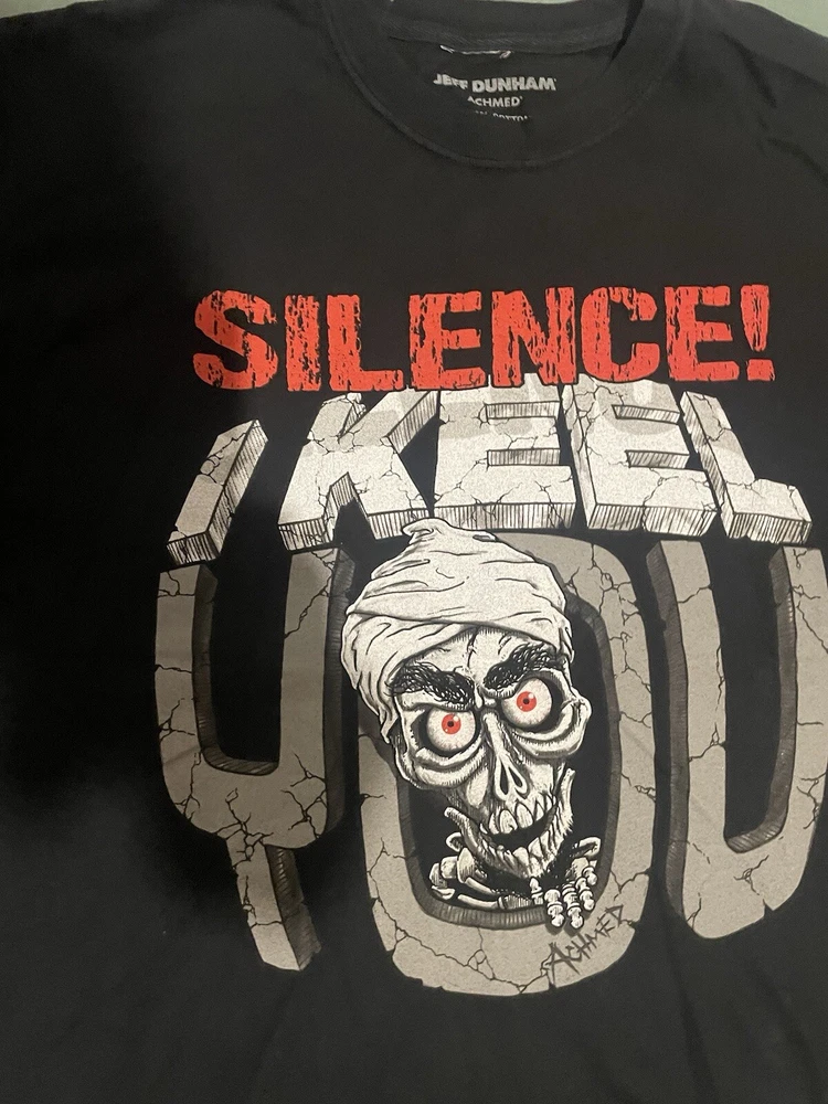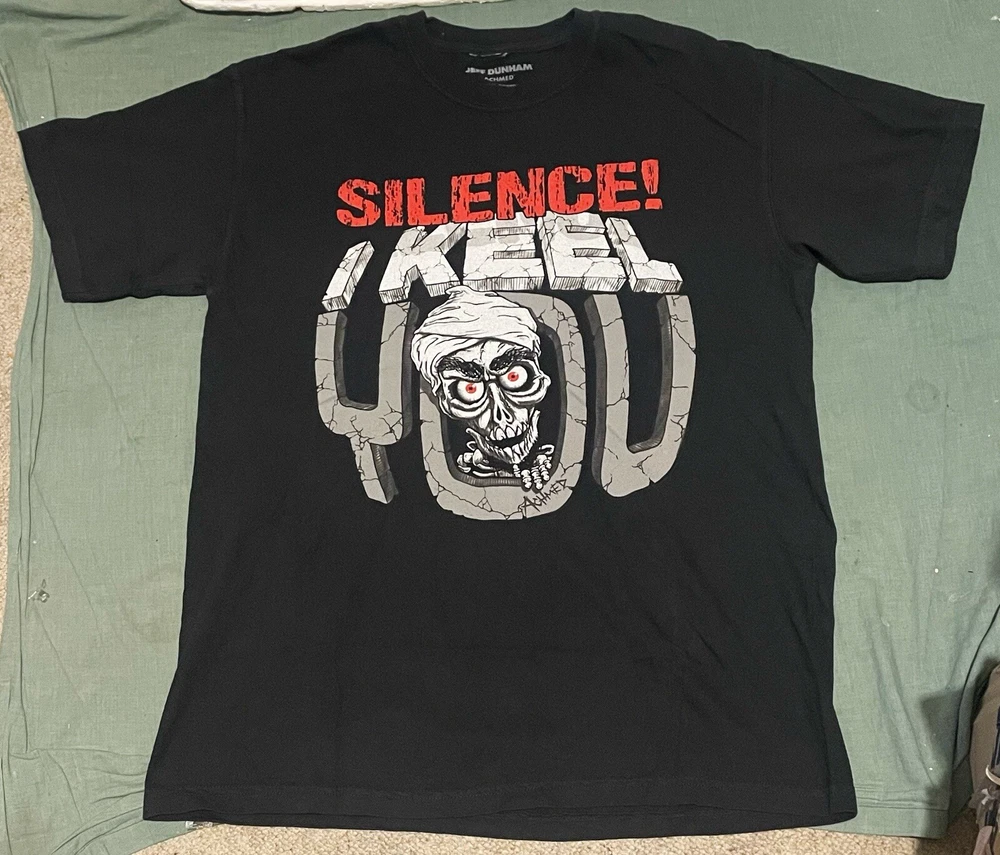 Jeff Dunham Achmed T-Shirt Mens SILENCE I KEEL YOU Comedy Graphic Tee - SIZE MED Pre-Owned but good quality, no rips, tears, logos still nice. Armpits are good no holes. Still very good wearable quality (see photos please) MEASUREMENTS: LENGTH 72 Cm ARMPIT TO ARMPIT 52 Cm PLEASE CHECK OUT MY OTHER / BUY IT NOW AiND STORE FOR OTHER GREAT ITEMS AT A VERY GOOD PRICE POINT. I USUALLY ACCEPT OFFERS WITHIN REASON, SO IF YOU SEE SOMETHING YOU REALLY WANT, BID, BUY OR MAKE ME OFFER, 9 TIMES OUT OF 10 IF IT’S A REASONABLE OFFER I DO ACCEPT !!! BOTH FOR AUCTION AND BUY IT NOW / STORE !! LET’S DO A DEAL ! COMBINED POSTAGE AVAILABLE !! POSTAGE WILL BE FLAT RATE - $9.70 - satchel W/ postage and handling Inc. Please note there can be delays with postage as determined by Australia Post and International, any major delays please message me so I can follow up your item thanks. I have been an EBay seller and buyer since 2005, 100% feedback rating - check all my ratings and buy with confidence - All items sent by the next day once payment is cleared !! Please note if you purchase on Thursday evening after 5pm and during Friday, those items won’t be sent till Monday as Post Office is closed on Weekends and Address Labels need to be created and catalogued on the computer and not hand written THANKYOU :) I describe all pre-owned clothes / items quality as detailed as possible. If you have any issues when you receive your clothing or items please message me first before leaving feedback as I’m more than happy to help you out and find a solution should any issues arise.