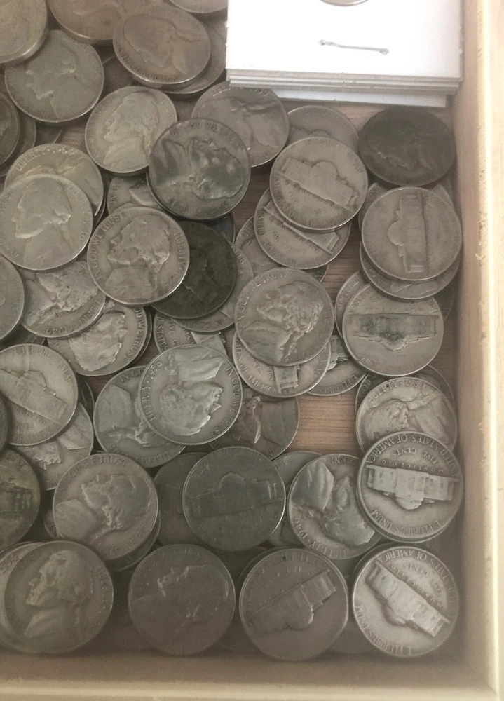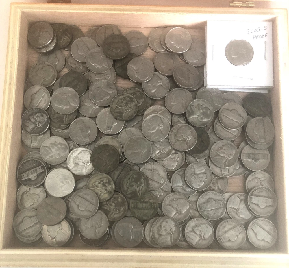 Jefferson Nickels Lot Mixed Dates w/ Wartime Silver. G-XF-Unc-Proof 175+ Coins Among the dates included: Date Mint Variety Cond 1939 VG-VF+ 1940 VG-VF+ 1940 D VF 1940 S VG-VF+ 1941 VG-VF+ 1941 D VG-VF+ 1941 S VF+ 1942 VG-VF+ 1942 P Silver G-VG+ 1942 D VF+ 1943 P Silver VG+ 1943 S Silver VF+ 1944 P Silver VG+ 1944 D Silver VG-VF+ 1945 P Silver VG+ 1945 S Silver F-VF+ 1946 VG-VF+ 1946 D VG-VF+ 1947 VG-VF+ 1948 VG-VF+ 1948 D VF+ 1949 VG-VF+ 1949 D VG-VF+ 1952 VG-VF+ 1952 D F-VF+ 1953 VG-VF+ 1953 D VF+ 1953 S VF+ 1954 VG-VF+ 1954 D VF+ 1954 S VF+ 1955 VF+ 1956 D VG-VF+ 1957 VF+ 1957 D VG-VF+ 1958 VF+ 1958 D VG-VF+ 1960 VF+ 1960 D VF+ 1962 VF+ 1962 D VF-XF+ 1964 VF-AU 1964 D VF-UNC 2001 S Proof 2002 S Proof 2003 S Proof 2010 S Proof 2023 P UNC