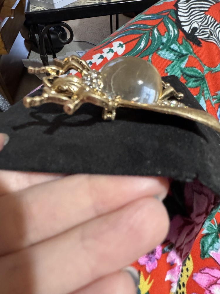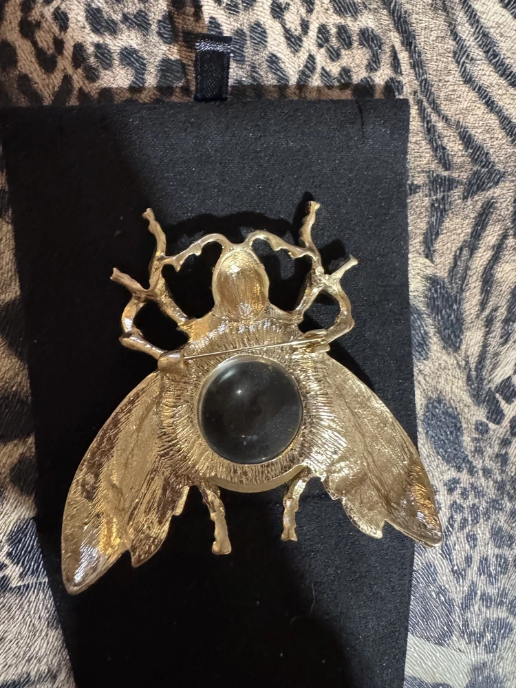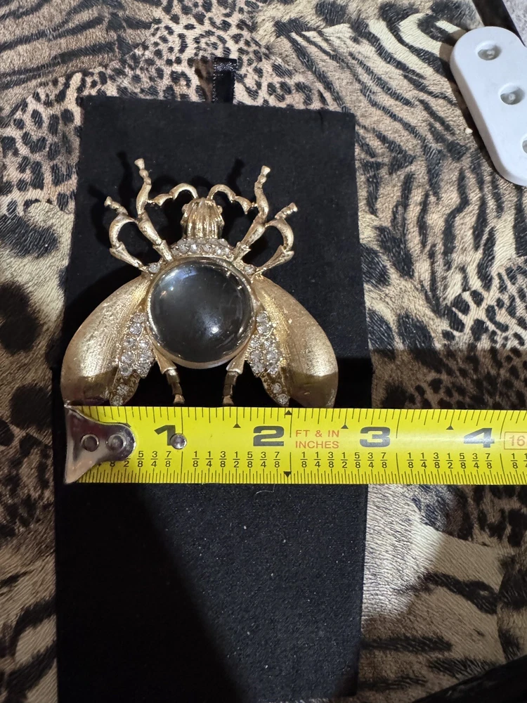 Jelly Belly Bug Insect Brooch Gold Fly Rhinestone Figural Pin Large Statement. Condition is Pre-owned. Shipped with USPS Ground Advantage.