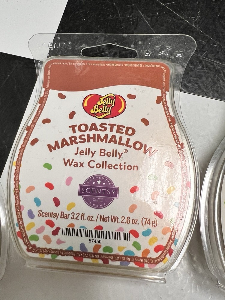 Jelly Belly Collection Scentsy Wax Bars Lot Toasted Marsh, Juicy Pear, Apple NEW 1 toasted marshmallow 1 juicy pear 1 green apple Warm & fruity lot Discontinued