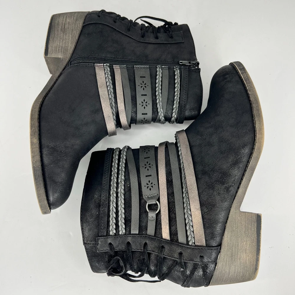 Elevate your shoe game with these stylish Jelly Pop Garbo ankle boots . Featuring a trendy almond toe and zip closure, these boots are perfect for any fashion-forward woman. The black faux leather upper material is accented with a zipper for added flair. These boots have a mid-height block heel and a polyurethane outsole for durability. The ankle strap adds a touch of sophistication and the foam insole provides comfort. Suitable for any season, these boots are a must-have addition to any wardrobe. Available in US size 10 and UK size 7.5, these Jelly Pop Garbo boots are perfect for any occasion. 100% CUSTOMER SATISFACTION IS OUR GOAL! Our items are always carefully examined for condition, measured if necessary, and photographed in a climate controlled and smoke-free environment. We make every attempt to accurately describe and clearly picture the items we have for sale. Please, ALWAYS view all of the photos. We value your business and our goal is your complete satisfaction. FAST SHIPPING All items are packaged with care and shipped out the same or next business day via USPS, FEDEX, or UPS with tracking numbers so you are always informed. RETURNS We offer a 30-day return policy. All items must be unused and unopened in the condition in which they were received, with original packaging, and all accessories included for return. REVIEWS - CUSTOMER SATISFACTION - COMMUNICATION We aim to make you happy. After you receive your shipment, please leave a positive review . If you have concerns or questions about your order, please contact us so we can resolve the issue. We will do our best to make you satisfied. THANK YOU FOR YOUR BUSINESS!
