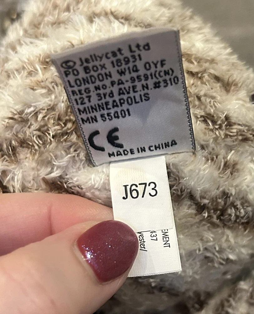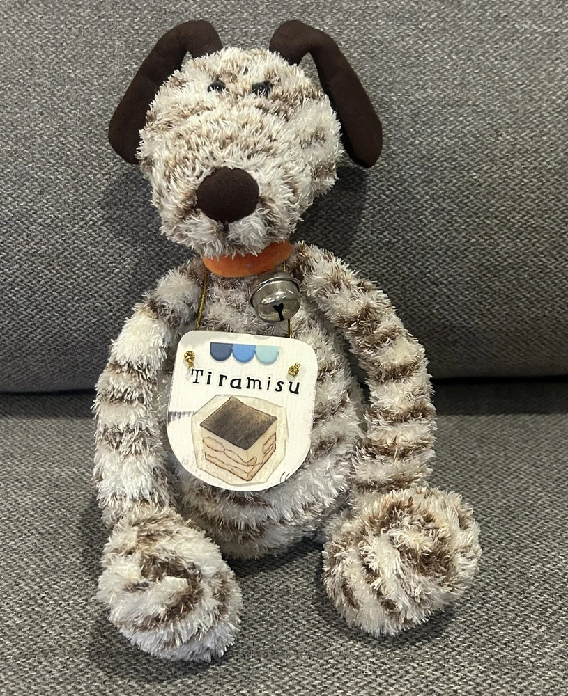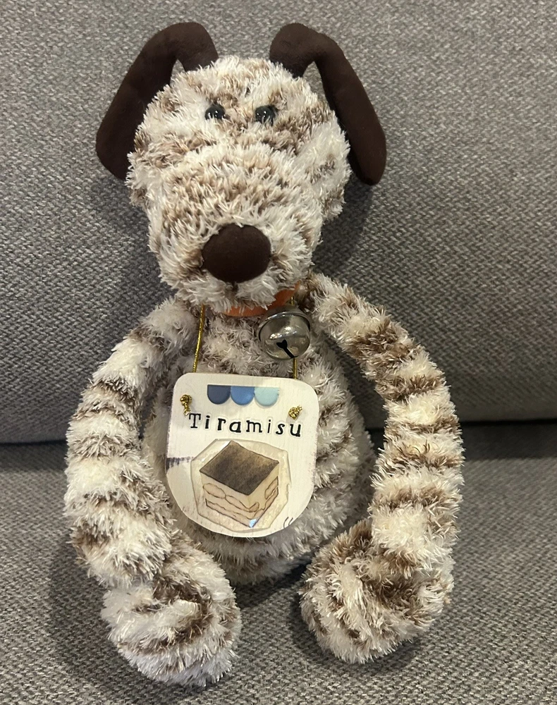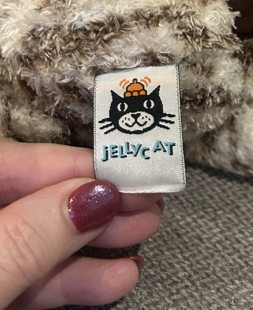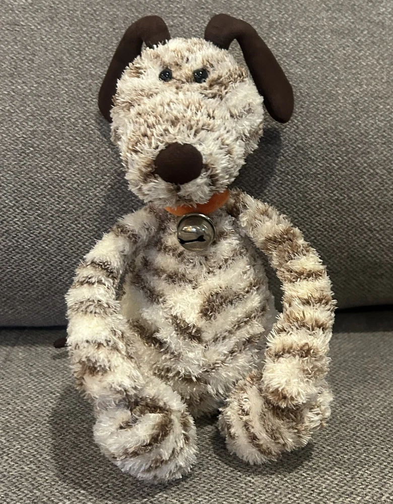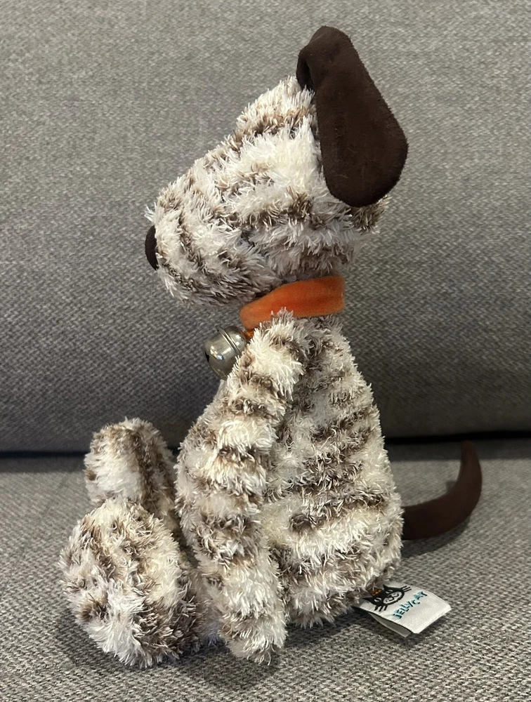 Very good used condition. Bum tag only. Velvet collar and bell are in good shape. Super rare and retired This Jellycat Ciao Bella Tiramisu Dog Puppy is a must-have for any stuffed animal collector. With its adorable stripes and brown cream color, it is sure to bring a smile to your face. The bell on its neck adds an extra touch of cuteness. The brand Jellycat is known for their high-quality stuffed animals, and this one is no exception. It is small in size, measuring between 6-14 inches, making it perfect for cuddling and playing with. Add this rare find to your collection today!