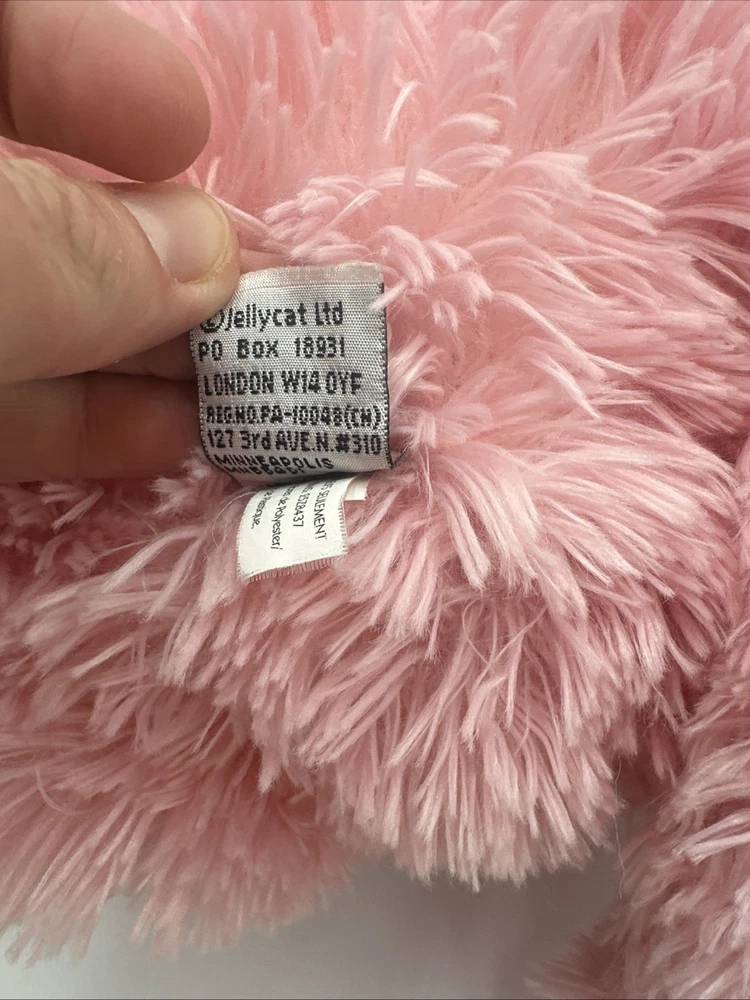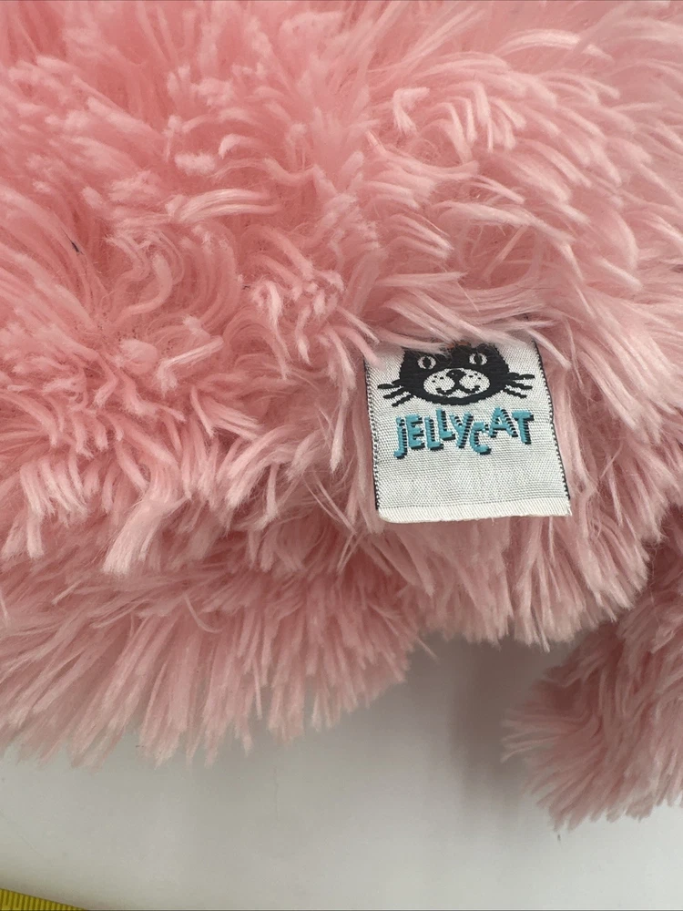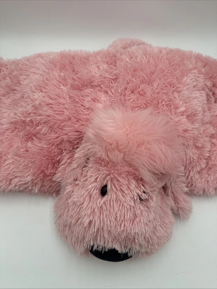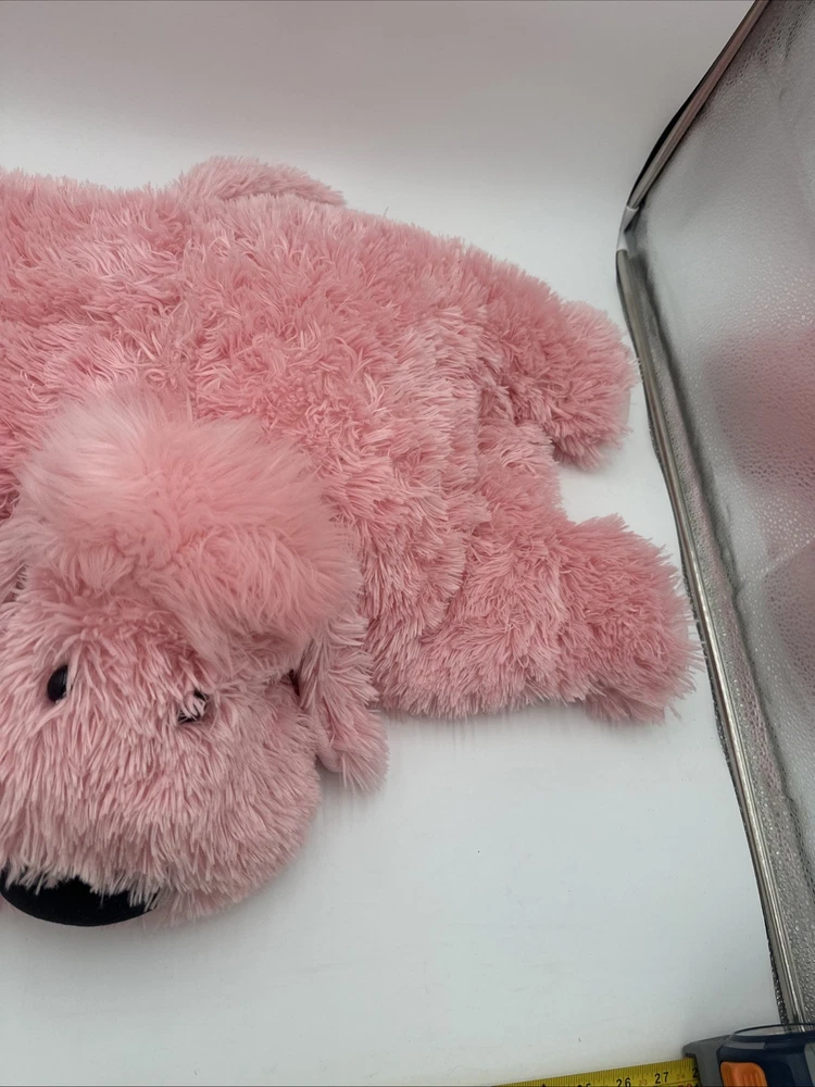 The Jellycat Floppy Large Truffles Dog Pillow is a delightful 28" plush stuffed animal that is sure to bring joy and comfort to any child or adult alike. With its soft pink color and adorable design, this Jellycat product is a sought-after item for those who appreciate high-quality stuffed animals. Made in China by the renowned brand Jellycat, this large-sized plush toy is perfect for cuddling and playtime.