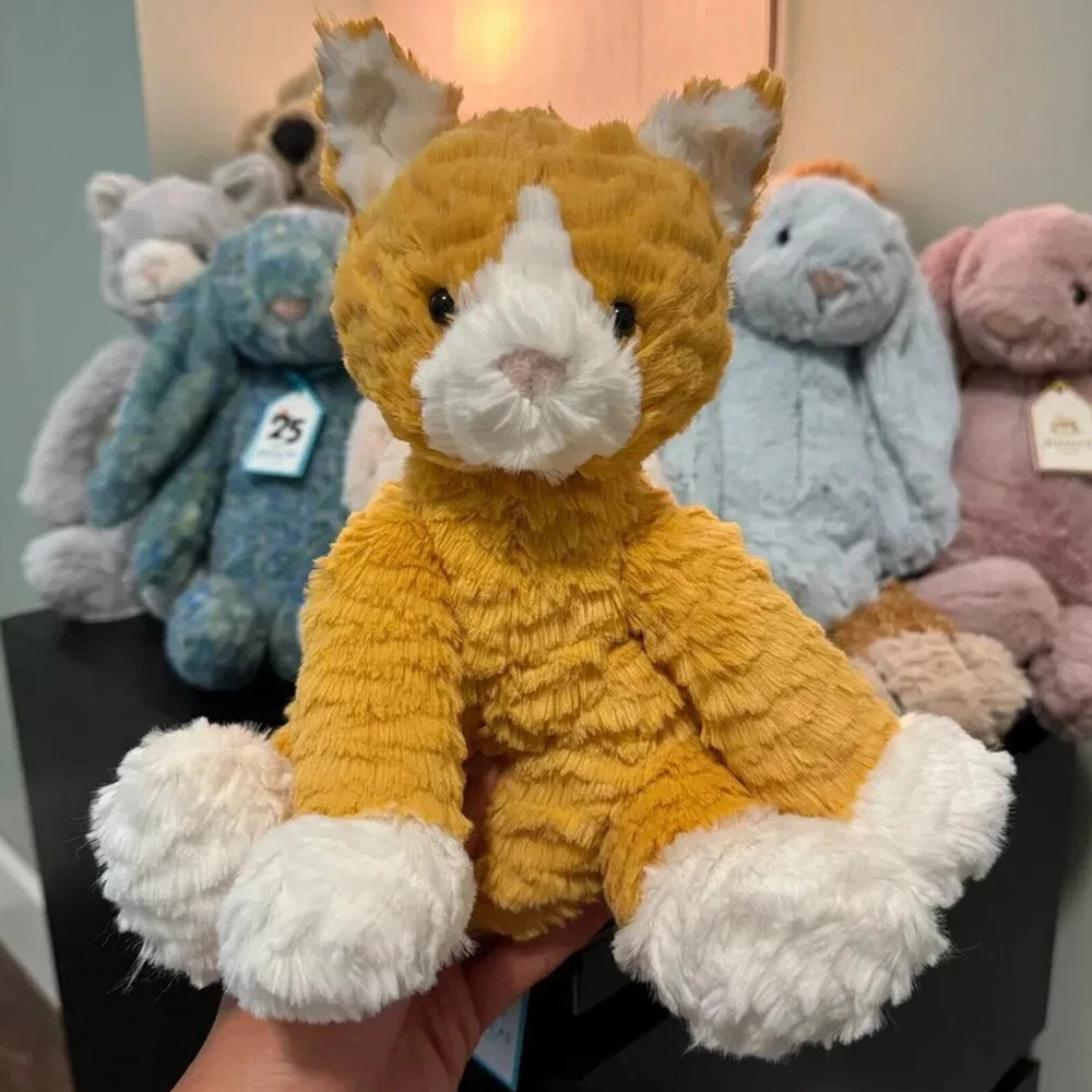 Features 1. In the dream world of plush toys, Jellycats is always the warmest and most healing presence, and this 23cm/9-inch ginger cat is even more adorable, ready to capture your heart! 2. On the round face of the wavy orange cat, there are two large eyes that resemble deep lakes, as if hiding countless stories about adventure and sweet dreams. It is blinking at you, looking forward to embarking on a new journey. 3. Skin friendly touch: Choose comfortable and soft plush fabric. When you hold this plush toy in your arms, it feels like you are tightly wrapped by the warm softness of the countryside. You just want to immerse yourself in this comfort and forget about the distractions of the outside world 4. Exquisite craftsmanship: The shape is realistic, with orange and white fur on the body of the ginger cat, which is overly natural and smooth, as if it has been carefully softened by the most outstanding painter of nature. Each strand of hair is distinct and vivid. It seems like the next second it will shake its body and shuttle flexibly through every corner of the room. 5. The best companion: It is the warm-hearted companion in your life. After a busy day at home, exhausted and collapsed on the sofa, Ginger Cat lay quietly on the side, looking at you with its healing eyes and reaching out to embrace you. All the pressure could be released in this warm embrace. Specification Material: Cotton Height: 23cm Weight: 300 g Package Include: 1x Plush toy Note: Due to the difference between different computer monitors, the picture may not reflect the actual color of the item. We guarantee the style is the same as shown in the pictures. Thanks!