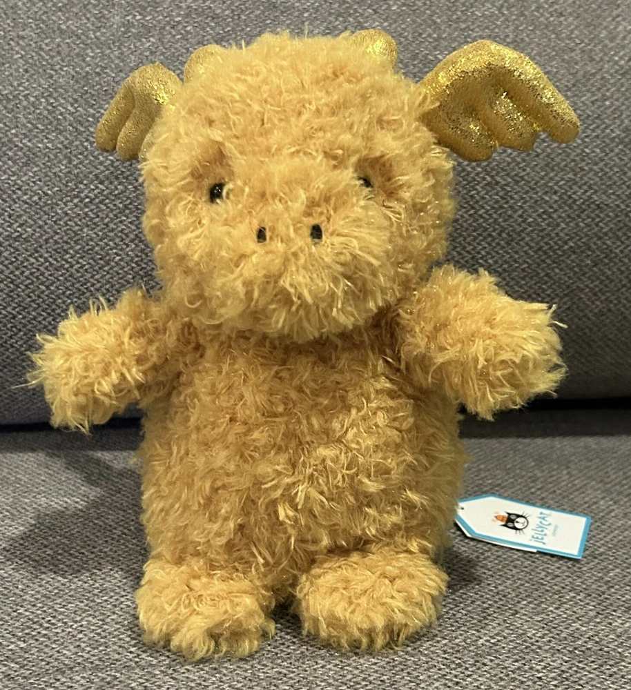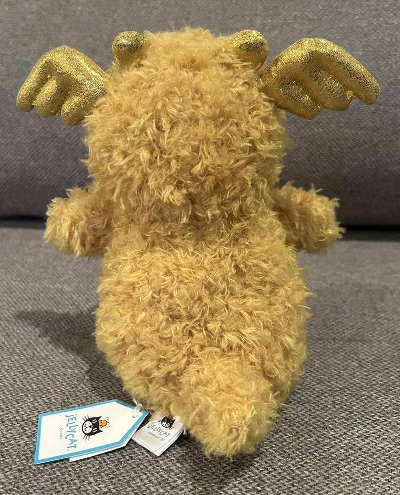 Dimensions: 7.1in x 3.9in x 3.1in Sitting Height: 7in This Jellycat Little Dragon is a must-have for any stuffed animal collector. With its vibrant yellow and gold details, sparkly wings, and fuzzy texture, it's sure to bring joy to people of all ages. Measuring in at a small size of 6-14 inches, it's perfect for cuddling and displaying. The Jellycat brand is known for its high-quality and adorable stuffed animals, and this Little Dragon is no exception. Whether you're looking to add to your collection or gift it to someone special, this toy is sure to bring a smile to anyone's face.