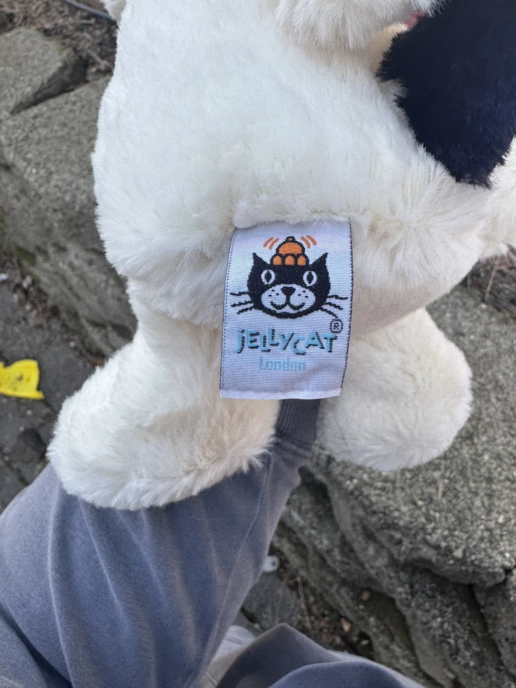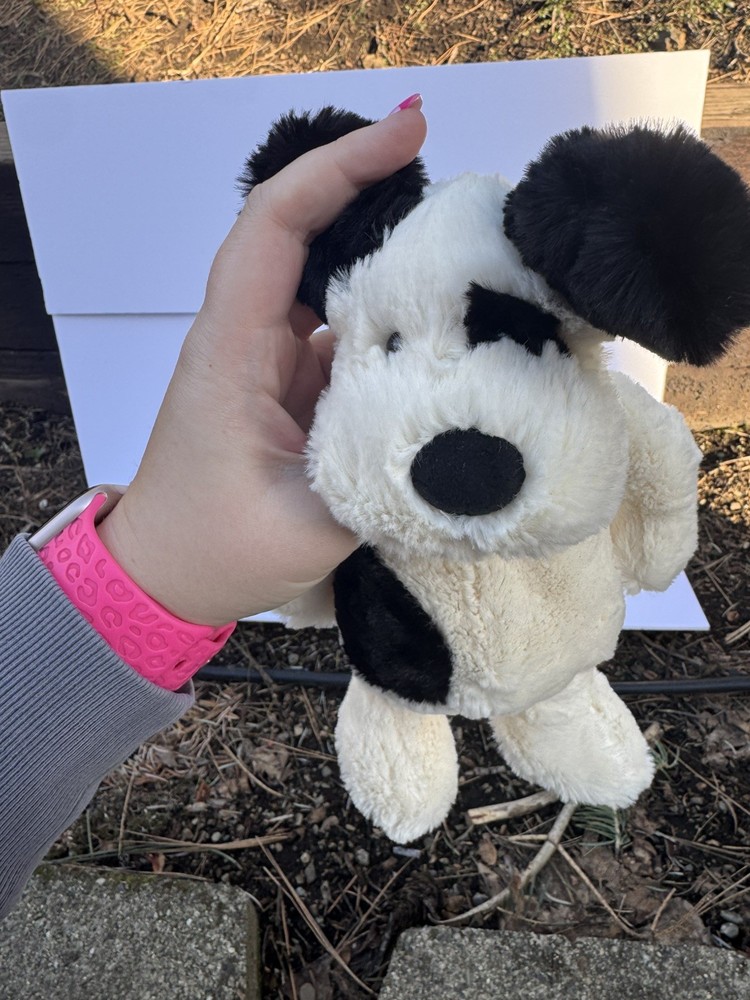 The Jellycat Medium Original Bashful Black and Cream Puppy is a 12-inch stuffed animal that is perfect for cuddling and playtime. This adorable puppy features the signature Jellycat softness and quality, making it a delightful addition to any toy collection. With its cute black and cream colors and super soft feel, this puppy is sure to bring joy to both children and adults alike. This puppy is in EUC.