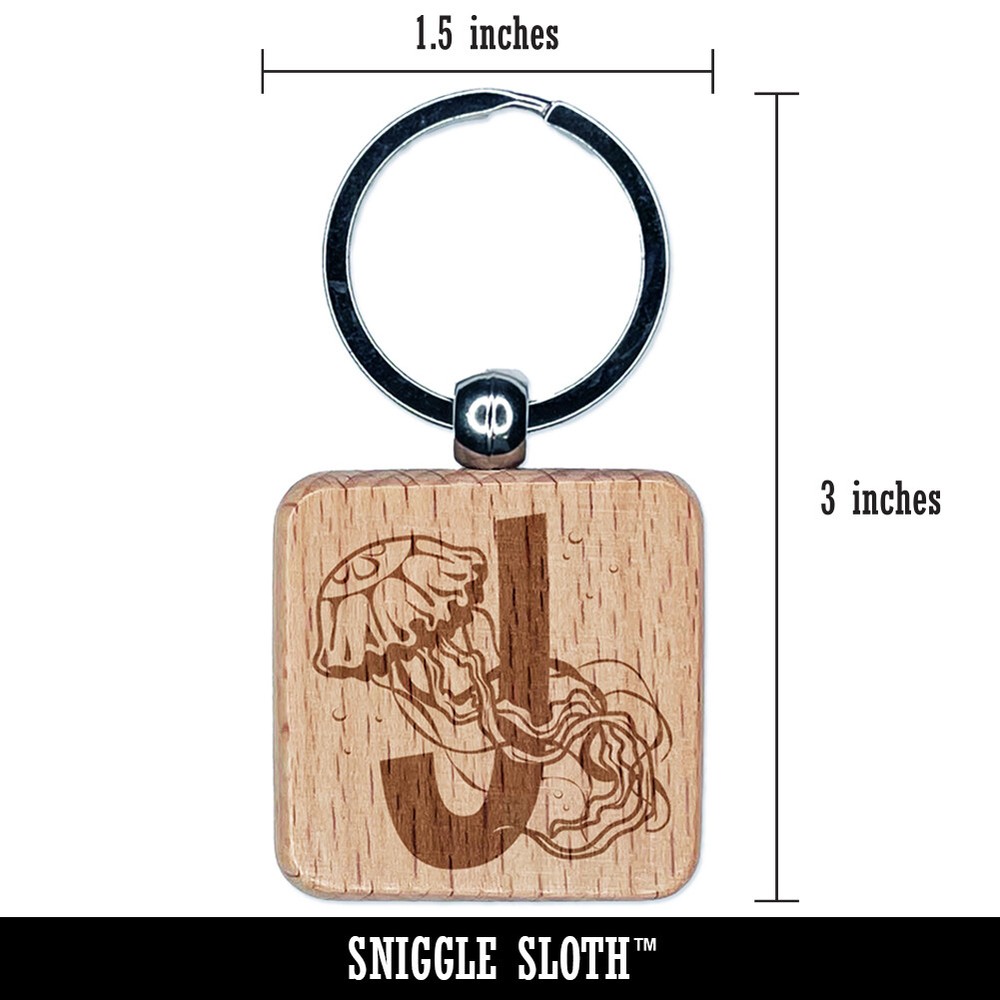 Jellyfish Wood Keychain - Animal Alphabet Letter J Charm