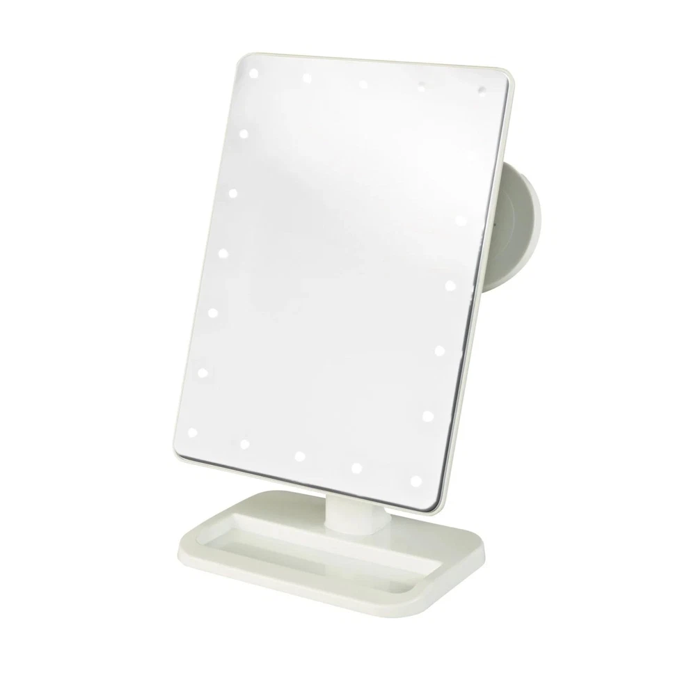 Jerdon 8-Inch by 11-Inch Lighted Vanity Mirror - Rectangular Tabletop Mirror in White with 10X Magnification Spot Mirror - Model JS811W Product Details Brand: JERDON Room Type: Dressing Room, Bathroom, Bedroom Shape: Rectangular Product Dimensions: 11"L x 8"W Frame Material: Plastic Product Dimensions ‏ : ‎ 7.25 x 5.25 x 16 inches; 1.85 Pounds Item model number ‏ : ‎ JS811W Batteries ‏ : ‎ 4 AA batteries required. UPC ‏ : ‎ Manufacturer ‏ : ‎ Jerdon TABLETOP VANITY MIRROR - This sleek, rectangular mirror looks stunning on any vanity or bathroom counter. The classic, white base and frame match a variety of home styles and aesthetics. This tabletop mirror is great for getting ready, especially for styling hair and applying makeup COMPACT AND CONVENIENT - This makeup mirror can be placed on any desk, vanity, or countertop. The mirror's compact design makes it portable and ideal for travel. Use AA batteries to power the mirror for use on the go. STORAGE TRAY - This tabletop mirror features a small tray at the base that's perfect for holding brushes, tweezers, chapstick, and more! MAGNIFICATION - This portable mirror includes a 3-inch diameter mirror with 10X magnification, ideal for plucking and tweezing. SPECIFICATIONS - This simple, elegant personal mirror is perfect for any bathroom. This 8" x 11" rectangular mirror is great for shaving, grooming, makeup application and more! The tabletop mirror has a lightweight base for easy mobility. Protected under a 1-year warranty