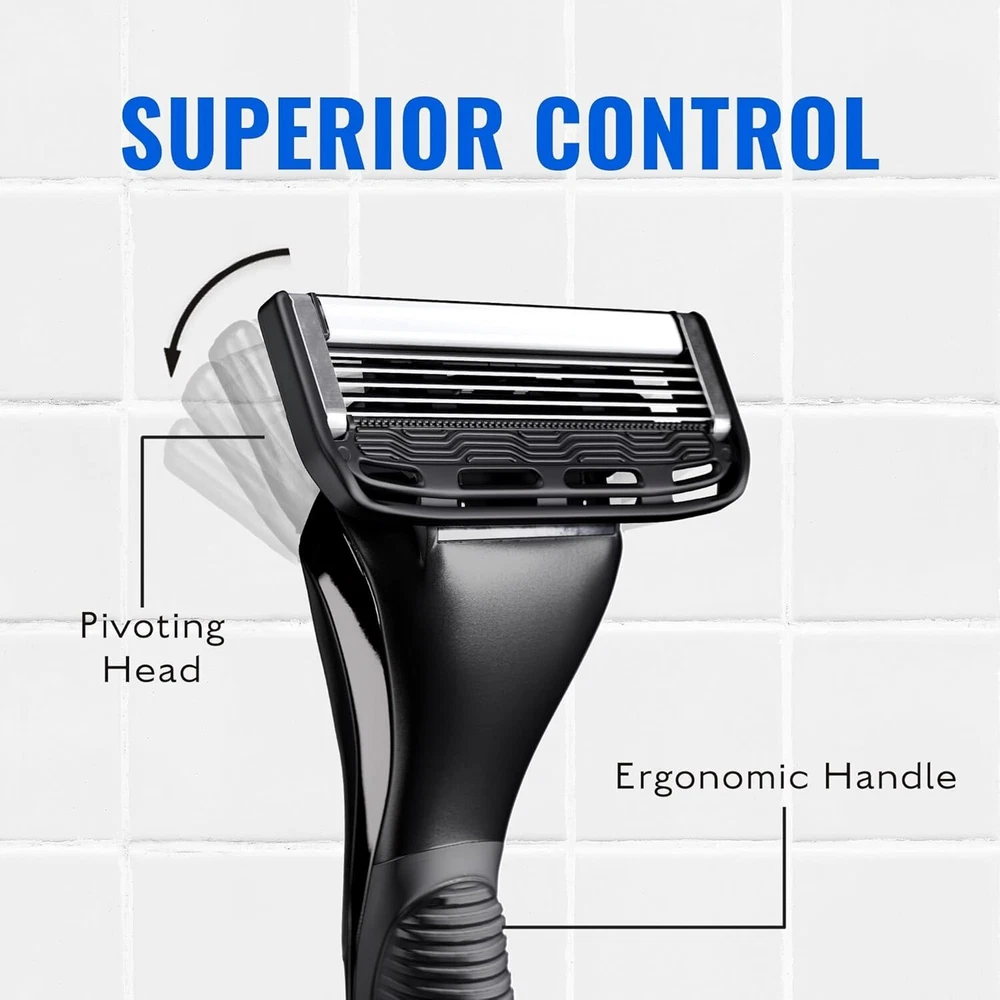About this item JEREMY'S RAZORS FOR MEN: You’re an American man with high standards & strong convictions. You embrace discomfort fighting for your values, but not while shaving. Get the best shave of your life! COMPLETE SHAVING KIT FOR MEN: Includes 1 razor handle and 1 three-blade razor cartridge. It's your ultimate men's shaving tool for a close shave every time. GET THE BEST SHAVE: Comfortably conquer hair & stubble with our new stainless steel coated blades. Get an incredibly smooth and ultra-close bathroom + shower shave on your face, head and body. PROTECT YOUR SKIN: Jeremy's advanced lubricating strip is infused with argan oil and aloe to continuously moisturize your skin as you shave. Perfect for regular and sensitive skin across the body. LOOK SHARP with advanced razor designs: The pivoting head contours your unyielding, handsome features to prevent nicks and cuts. The ergonomic handle allows for superior control and durability.