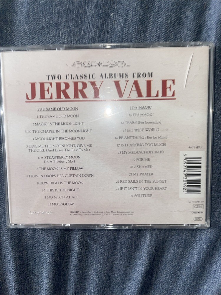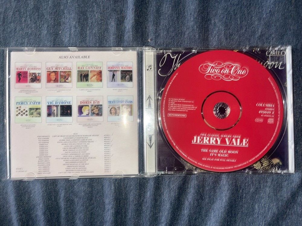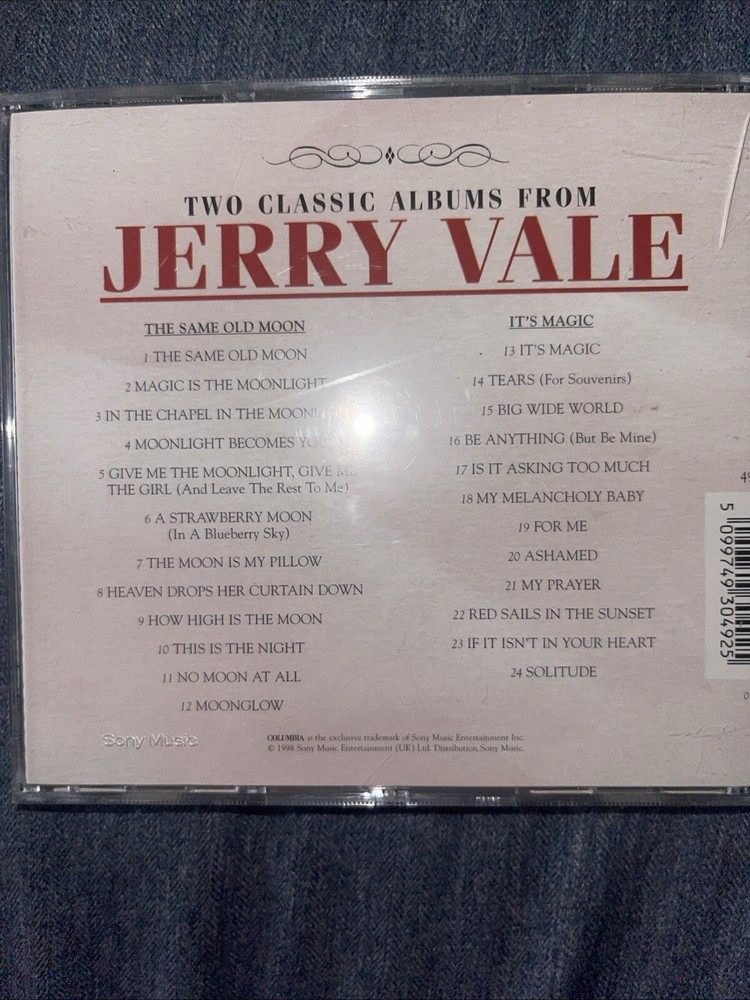 This is a Jerry Vale CD album titled "The Same Old Moon/Its Magic" with a barcode of 5099749304925. The album contains two classic albums in one CD and features vocal and traditional/vocal styles. The album is perfect for various occasions such as Christmas, New Year, birthday, and wedding. The CD is in mint condition and comes with a jewel case, original inner sleeve, and original cover. The album is produced by Jerry Vale and is in English language. CHEAPEST PRICE ON EBAY!!!