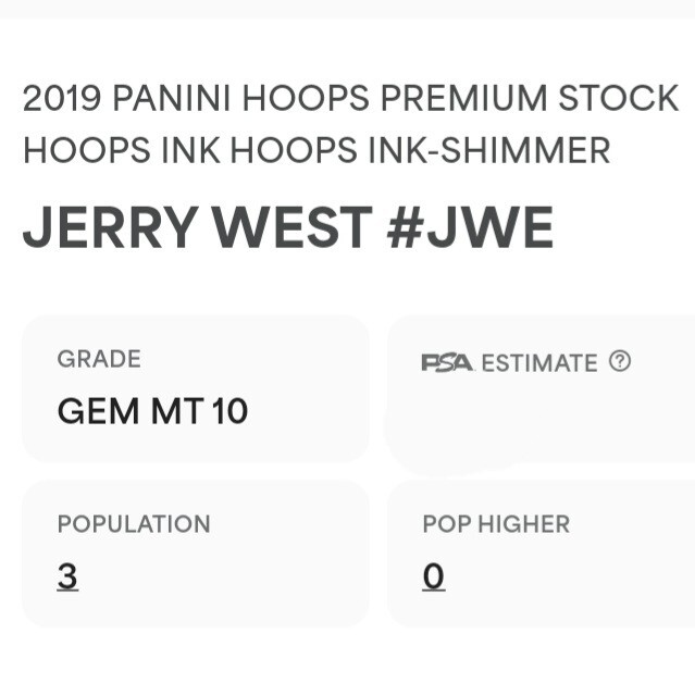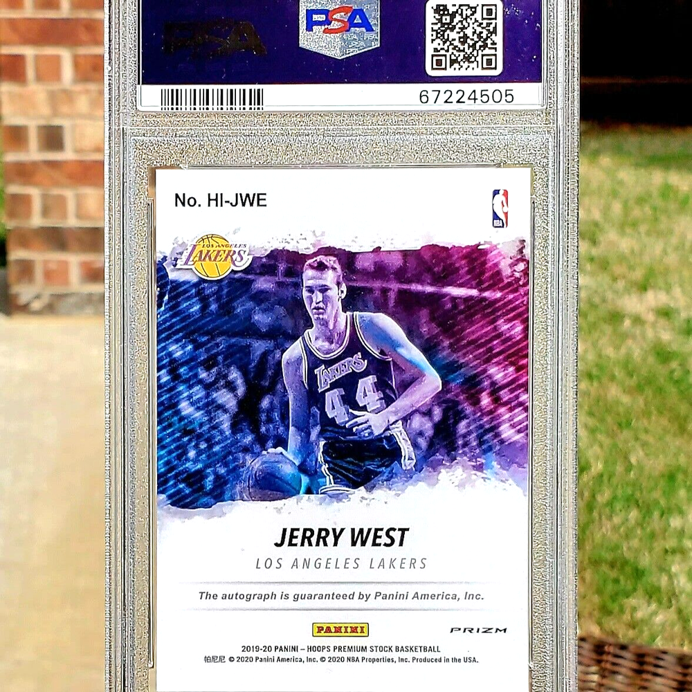 Jerry West - 2019 Hoops Premium - Hoops Ink Autographs Shimmer - PSA 10 (GEM MINT) Low POP (POP 3 at the time of posting) This Jerry West 2019 Panini Hoops Premium trading card features a stunning autograph on a shimmering background. The card is in pristine condition with a PSA 10 grade and a low POP of only 3. This card is a must-have for any basketball fan and collector, especially those who admire the NBA legend and Hall of Famer. The card is an original and licensed reprint, made with high-quality card stock material. It belongs to the Hoops Ink insert set and is numbered HI-JWE. The autograph is authenticated by Panini Authentic. This card is a great addition to any sports trading card collection and a wonderful way to commemorate Jerry West's NBA championship and his outstanding contribution to the sport.