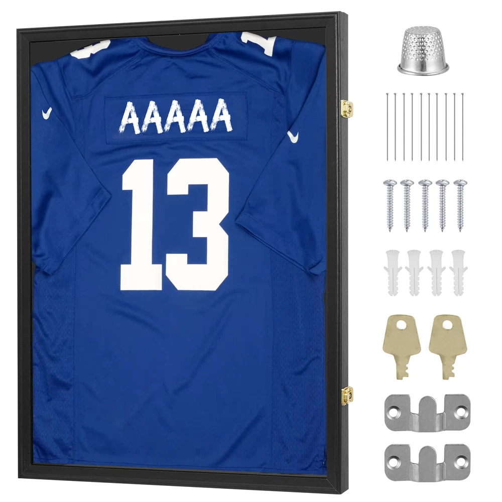 Jersey Display Case Frame Shadow Rack Box Exquisite Lockable with Hanger Wood Product Description Description: Made of solid pine wood with exposed metal hardware, this jersey display frame case is double enough to display in your home for years to come. With high transparency PS board, this Jersey Display Frame is perfect for storing and showing your jerseys, photos, crafts or other memorabilia clearly. Coming with lengthened hanger, your jersey will look more upright in the plush-lined frame. The classic black appearance fits exsiting decor of your room. Features: Durable pine material with beautiful spray paint, complementing home decor UV resistant door with high transparency, offering sun and dust protection Suitable for varied of jersey from your favorite basketball, soccer team PS board fixed by 10 press buckles in the door frame for more stability Hinged door with gold locks for opening easily and closing tightly Perfect to store and display your valuable sports memorabilia Back metal hooks are convenient for hanging on the wall Strong packaging ensures safety during transportation Anti-scratch film avoids scratches and prevents dust Specifications: Color: Black Material: Pine Net Weight: 5.18 lb Overall Dimension: 23.23"L x 1.61"W x 31.3"H Inner Dimension: 22.24"L x 0.98"W x 30.32"H Hanger Length: 19.69" PS Board Thickness: 0.08" Package Includes: 1 X Jersey Frame Display Case 1 X Hanger Note: Not Include Jersey Payment Before you palce an order, please kindly make sure that you have a paypal account. We accept PAYPAL payment only. Payment should be completed within 2 days after auction closed, or unpaid dispute will be filed for an closing auction. An unpaid case will be filled after 4 days. Delivery details We only ship to USA ! We ship to your eBay address. Each package will be shipped to Australia by AU Post Regular Parcel with tracking number. Please check your shipping address carefully before checkout, it can't be changed if order completed. All items will be shipped within 1-2 business day upon receipt of payment.Orders placed on weekend will be shipped within 3 days. If you do not receive your item in 7-10 business days.please contact us immediately for further assistance. We will be responsible for any damages or losses incurred in the shipping process. About us We maintain high standards of excellence FIVE STAR and strive for 100% customer satisfaction! Positive Feedback is very important to us. We hope that you contact us immediately Before you give us neutral or negative feedback, so that we can satisfactorily address your concerns. We promise to offer the lowest price and high quality produce. Our working time: From Monday to Friday(9:30 am to 18:00pm), we don't working on holidays ,hope you can understand and know that , thank you. Please always talk to us via ebay Message. We appreciate your business and look forward to growing our e-Bay sales with satisfied customers. Feedback Contact us If you have any questions, please feel free to contact with us by ebay Message during our business hours ( 9:30a.m. to 5:30 p.m.), or email us through eBay, we will try our best to help you to resolve it. For any presale or after-sale questions,please do feel free to email us! Due to the time difference, each email will be replied within 1 working day,and weekend will be delayed a bit.
