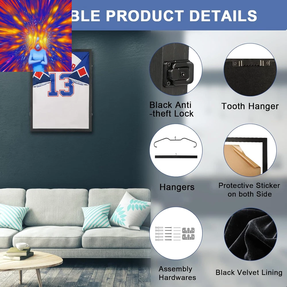 Store New Arrivals Add to Favorite View Feedback Contact Jersey Frame Display Case - Wall Mount Sports Jersey Display - Lockable Flat Jersey Shadow Box with 98% UV Protective Acrylic Door for Football,Hockey,Basketball,Baseball Sports Jersey - Black Description Frame Size 31.25 x 23.25 x 1.5 inches Item model number JerseyFrame-1Pcs Mounting Type Wall Mount Assembly required No Batteries required No Product Dimensions 23.25"L x 1.5"W x 31.25"H Item Shape Black Frame with Black Lock 1 Pcs Country of Origin China Fabric Type Wood Item Weight 11.23 pounds Color Black Shape Black Frame with Black Lock 1 Pcs Frame Material Wood Included Components Shadow Box Wood EXTERIOR DESIGN - Nixvexy jersey frame is made of wood covered with a black fade-resistant matte finish, along with a flat frame design that is not only durable, but also more smooth and harmonious. Highly translucent acrylic panels and black metal anti-theft locks protect the collection from dust and curious fingers; black velvet lining better complements your prized jersey. JERSEY PROTECTION - The high-definition, 98% UV - protected acrylic panels not only protect against dust, but also protect the jersey from yellowing and fading in natural light. The metal anti-theft locks and opening door are designed to make it easy to change jerseys and other collectibles, while keeping them safe while on display. MULTIPLE DISPLAY OPTIONS - Nixvexy jersey frame comes with a metal hanger, a wooden hanger and a KT board. The hangers is suitable for framing sleeveless and short-sleeved jerseys, while the KT board is more compact and flat, suitable for long-sleeved jerseys. You can choose the right way of framing jerseys according to your actual needs. The jersey frame comes with metal hooks and hanging accessories, which can help you hang your precious jerseys proudly on the wall for display. FIT SIZE - Nixvexy jersey case measures 31.25" x 23.25" x 1.5", which can fit most jerseys, such as basketball, soccer, baseball, field hockey and so on. It can also be used as a large shadow box for displaying your graduation memories, photos, sports memorabilia and other precious items, etc. IDEAL GIFT FOR SPORTS FANS- Smooth, beautiful and durable design, multiple display options, excellent collection display and protection and secure packaging design make the Nixvexy jersey frame an ideal gift for family, friends and sports enthusiasts. Product Description Nixvexy Jersey Frame Display Case Made of wood covered with a black fade-resistant matte finish, along with a flat frame design. Durable,more smooth and harmonious. Suit For Different Size Jersey Nixvexy jersey case measures 31.25" x 23.25" x 1.5", can fit most kind of jerseys, such as basketball, soccer, baseball,hockey and so on. Black Anti-theft Locks protects your cherish jersey. Metal Hanger Metal Hanger is suitable for displaying short-sleeved jerseys/ Wooden Hanger Wooden Hanger is suitable for displaying sleeveless jerseys. Pin Board Pin Board can display jersey more firmly and without wrinkle, suitable for long-sleeved jerseys. ABOUT US We offer the best prices around on high quality products. Our E-store includes media such as books, movies, music and games while offering electronics, toys, sporting apparel, clothing, tools, general home, garden items and more. SHIPPING We are always working hard to ensure your package arrives as soon as possible. Please understand that some factors like weather, high postal traffic, and the performance of shipping companies are outside of our control. We offer free shipping to the lower 48 states and ship within 2 business days of payment, usually sooner. We do not accept P.O. Boxes. Please provide a physical address. For shipping outside of the continental USA, we only use eBay's Global Shipping Program.The item is shipped to KY and then sent to the rest of the world. International customers are responsible for all duties and taxes. Continue to check out in order to calculate costs for shipping the item to your country. Messages regarding eBay's Global Shipping Program MUST be directed at eBay EXCLUSIVELY. RETURNS We offer a 30-Day Return Policy on items which you are not completely satisfied with. You have the option for a full-refund or an exchange of the item. No returns are available on items shipped outside of the USA. PAYMENT We accept PayPal. CONTACT US This page content is yet to come Please ad us to your favorite seller and visit again later Thank You CUSTOMER SATISFACTION We try our very best to make sure every customer is completely satisfied. If there's a problem, message us! We're happy to help. WE ACCEPT Copyright © 2021 AutoDS. | All Rights Reserved