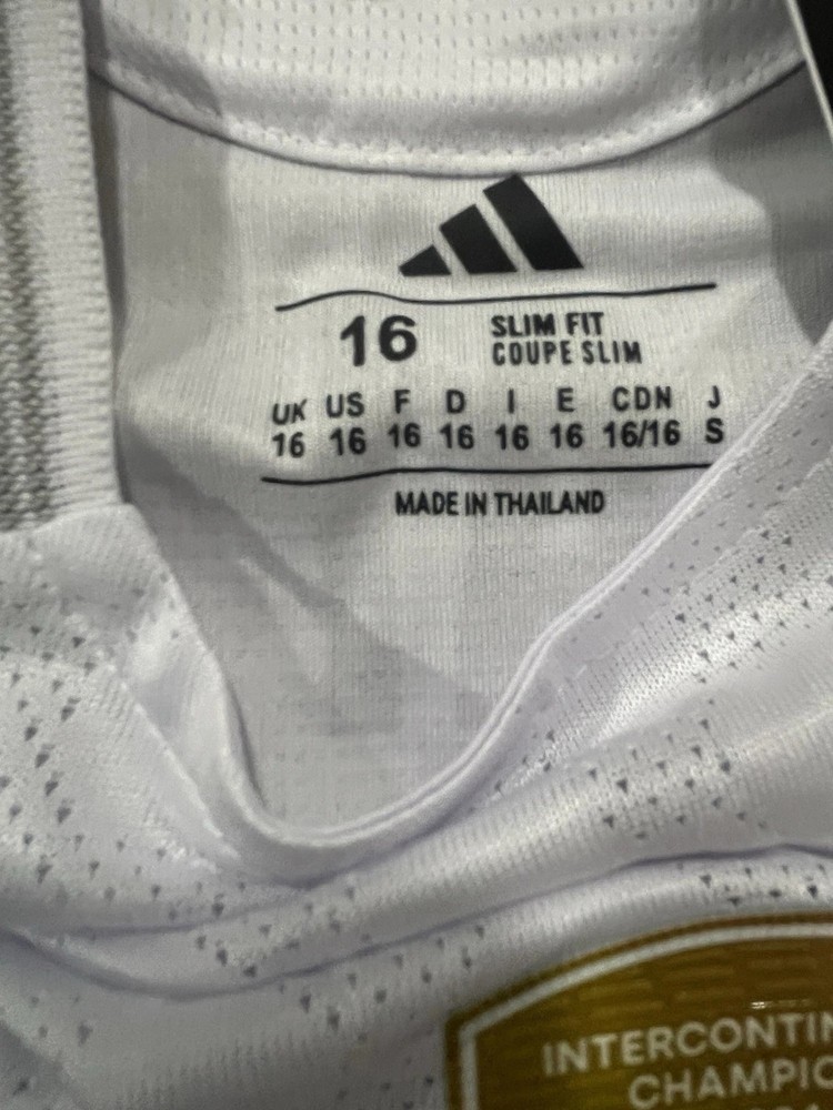 The product is a Real Madrid youth soccer jersey for the 2025-2026 season in size 16 (XL), specifically designed for boys. This jersey represents the popular international soccer club, Real Madrid, and is perfect for young fans looking to show their team spirit. Made for the sport of soccer, this jersey is a must-have for any young athlete or fan of the team.