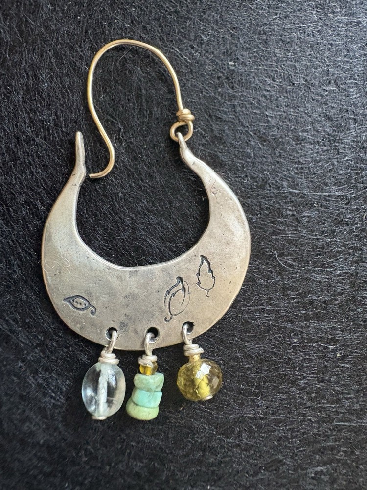 $ 12.08ON SALE * HANDCRAFTED LG. EGYPTIAN COPPER METAL-ART & TURQUOISE DROP EARRINGS