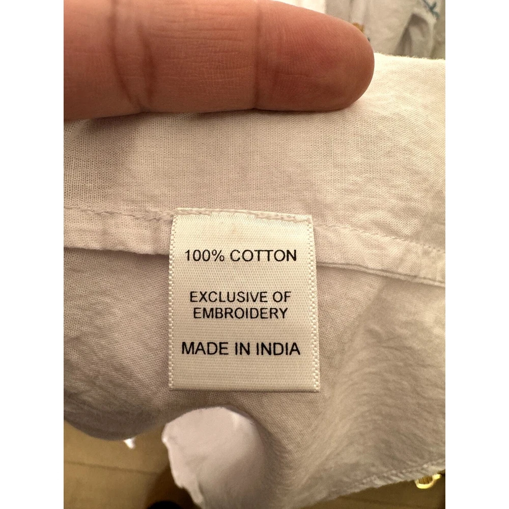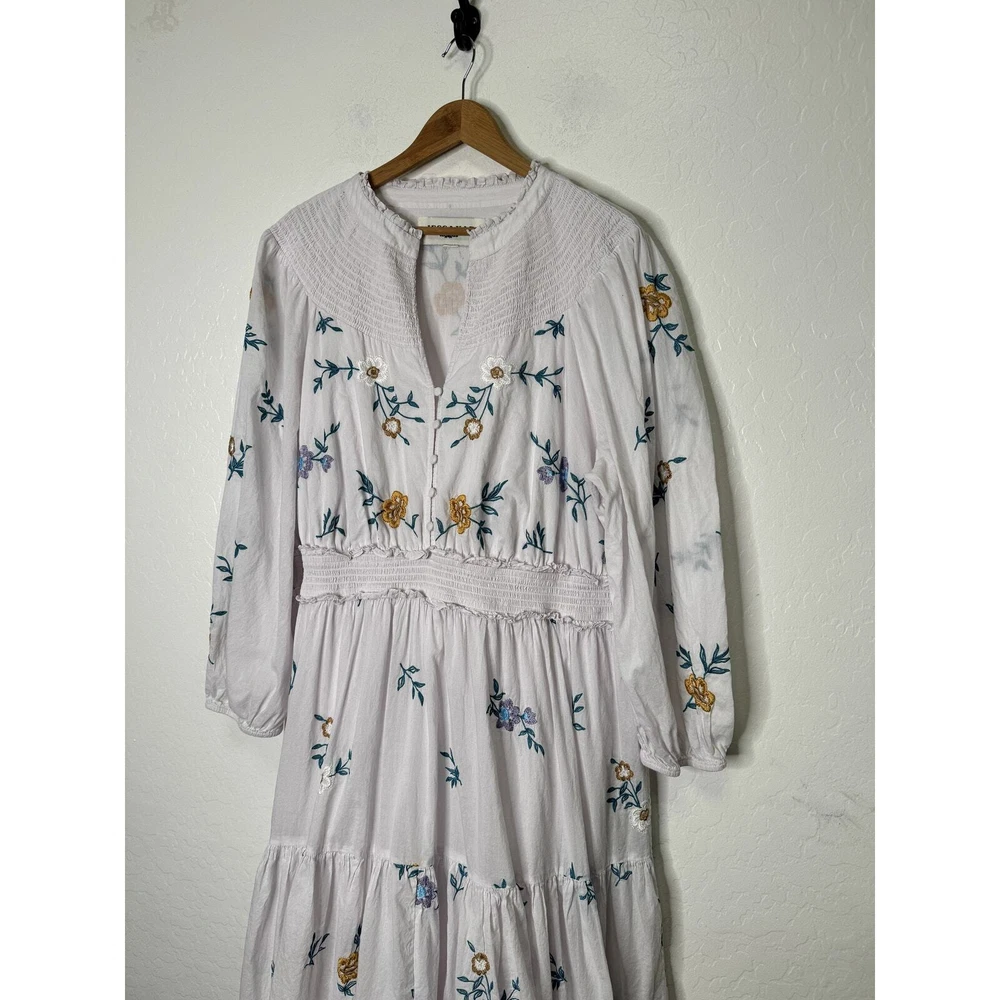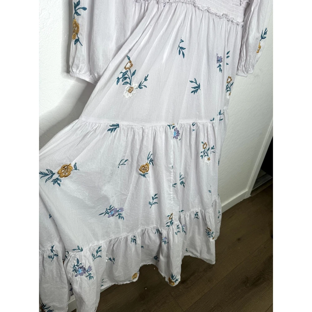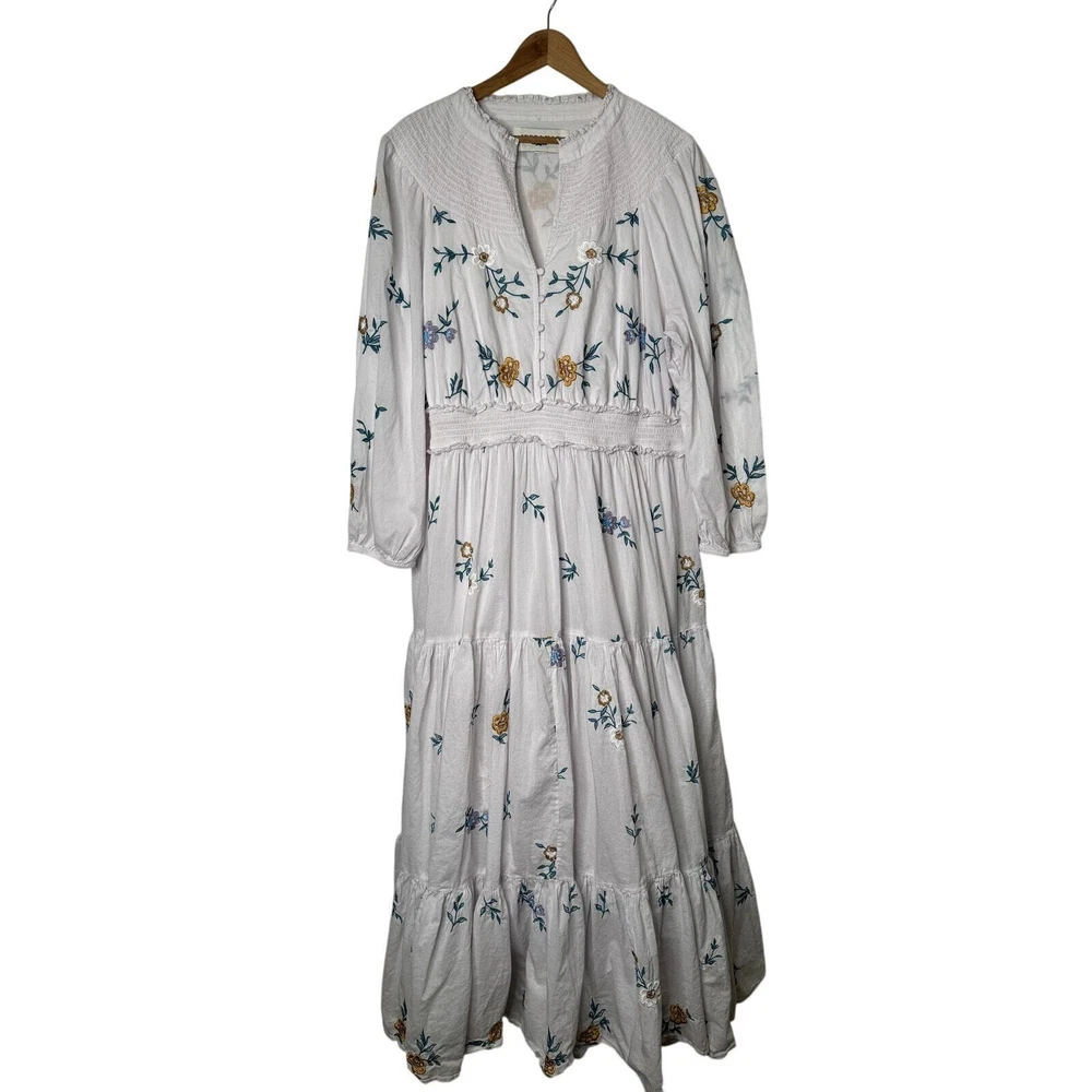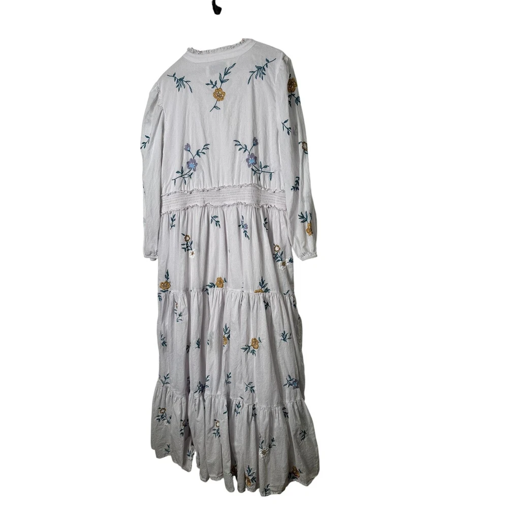 Jessakae Womens Long Sleeve Maxi Floral Embroidery White Dress Cotton India Made Lined 24" Pit to Pit