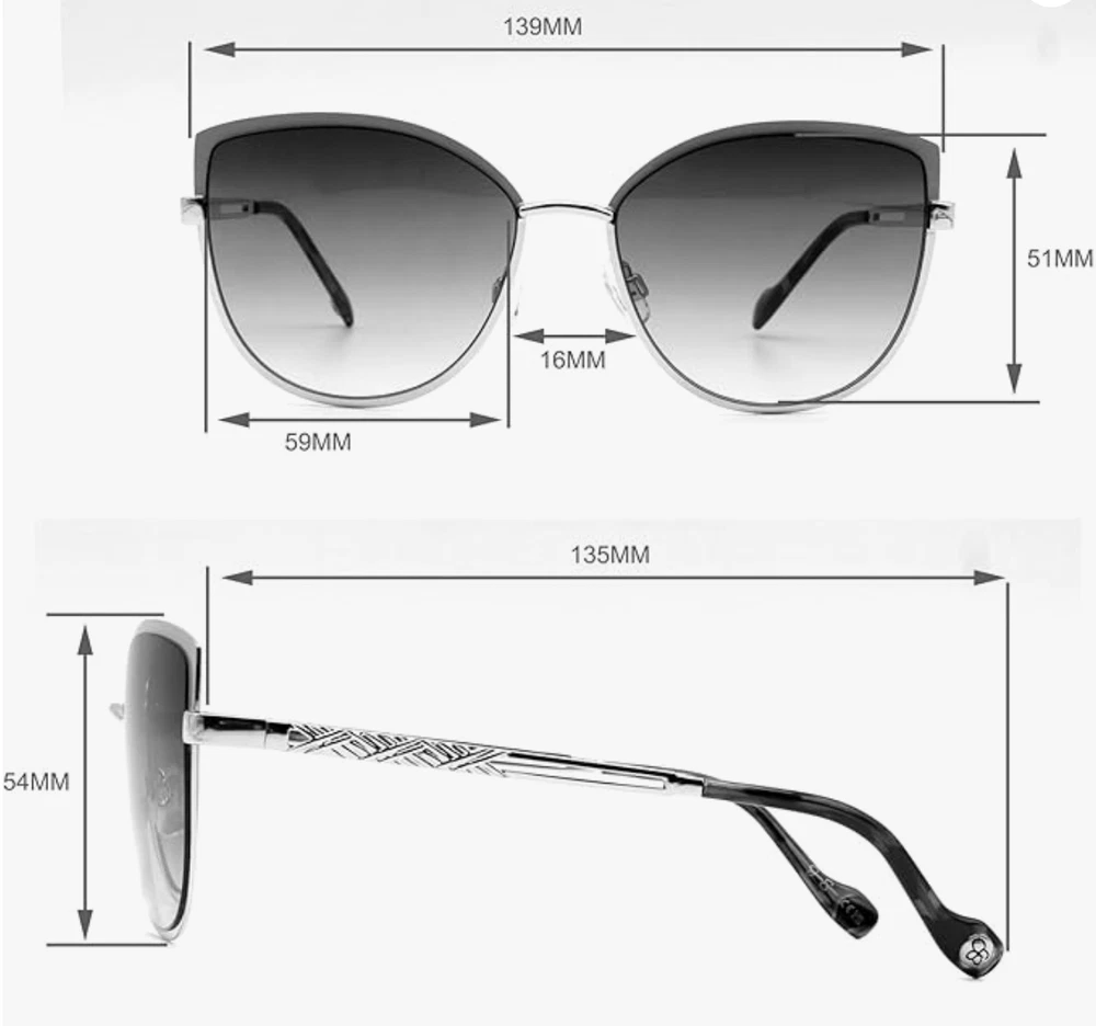 Cat Eye Sunglasses for Women: This pair of Jessica Simpson women's cat eye sunglasses is a retro style with a lightweight metal frame and textured vented temple; the perfect gift for women with style With UV400 protection, these sunglasses shield your eyes from harmful UVA and UVB rays, keeping them safe in style year-round, even on cloudy days when UV rays are just as strong; lens color shown: brown to rose Lightweight and Comfortable Frame: Made with a lightweight metal and clear self adjustable nose pads, these sunglasses are comfortable to wear all day long; color shown: rose gold with rose Gift-Worthy Designer Sunglasses: These Jessica Simpson sunglasses make a great gift for her, whether it's for a birthday, anniversary, or just because—they come in a designer gold or silver leather-like metallic case with magnetic closure, adding a touch of luxury—consider getting a spare pair for yourself too! Product Measurements: Lens Width 59mm (2.32in), Lens Height 51mm (2.01in), Frame Width 139mm (5.47in), Frame Height 54mm (2.13in), Temple Length 135mm (5.31in), Bridge Width 16mm (0.63in) DOES NOT INCLUDE CASE