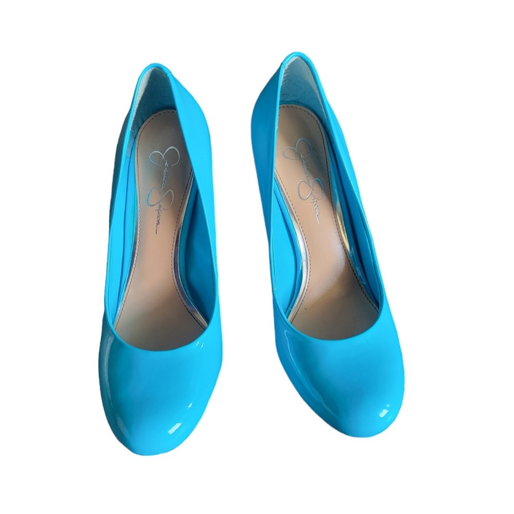 These Jessica Simpson heels feature a vibrant Capri Blue color in a patent finish, with a slip-on style and a round toe design. The ultra-high stiletto heel adds a touch of glamour to the pump silhouette, making them a stylish choice for any fashion-forward woman. Perfect for adding a pop of color to any outfit, these heels are a statement piece that exudes confidence and sophistication. NEW Jessica Simpson Patent Slip On Heels Round Toe Teal Blue Size 8.5 New in box Brand: Jessica Simpson Size: 8.5 New in box Round Toe Slip-on 4 inch heel