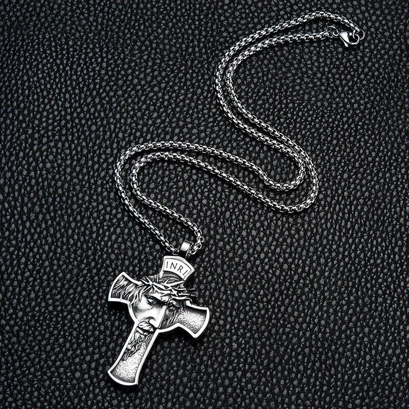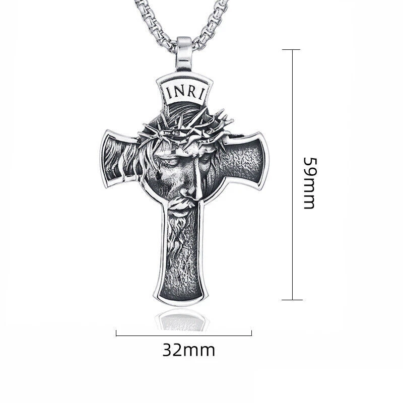 Jesus Christ Face Cross Pendant Necklace for Men Stainless Steel Crucifix Chain