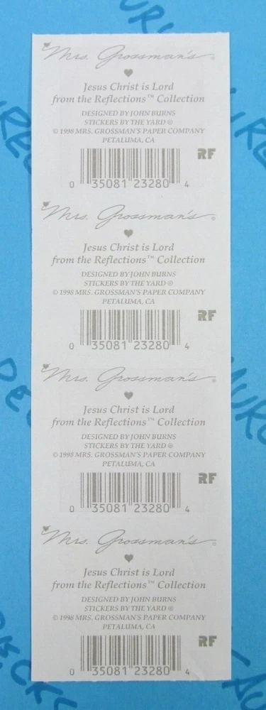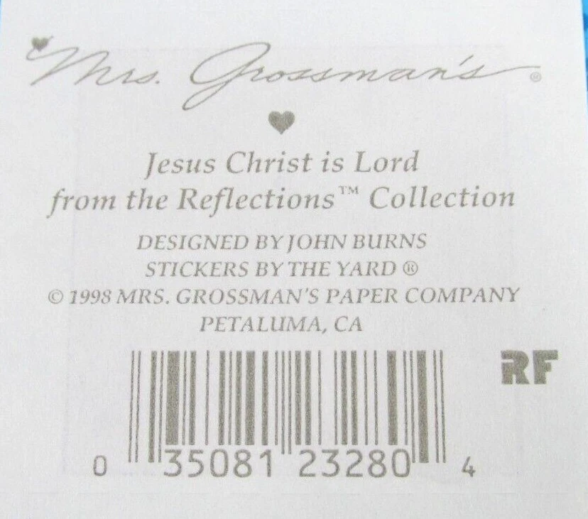Sticker Sheet Is Vintage New. Sticker Brand Is Mrs. Grossman's. Sticker Theme Is Jesus Christ Is Lord. When Purchasing Multiple Sticker Sheets Or Packs Please Add All Items To Cart Before Purchase So That Your Purchase Combines Down To Base Shipping Price. All items are shipped WITHOUT tracking in an envelope with cardstock.
