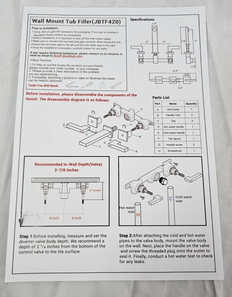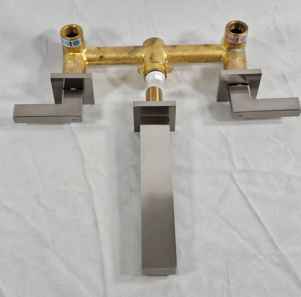 Room: Bathroom ASIN: B0CSZ2T2M2 Manufacturer: JetsBath Temperature Control: Manual Item Length: 14.56 in Spout Reach: 7.08 in SKU: 1761 - 12D Installation: Wall Mounted MPN: ‎JBTF420-BN Material: Brass Seller Notes: “Excellent Condition” Item Height: 3.14 in Brand: JetsBath Handle Type: Lever Number of Faucet Holes: 3 Finish: Brushed Nickel Features: Quick Cleaning Item Width: 9 in Color: Brushed Nickel Country/Region of Manufacture: Hong Kong Type: Tub Filler Number of Faucet Handles: 2